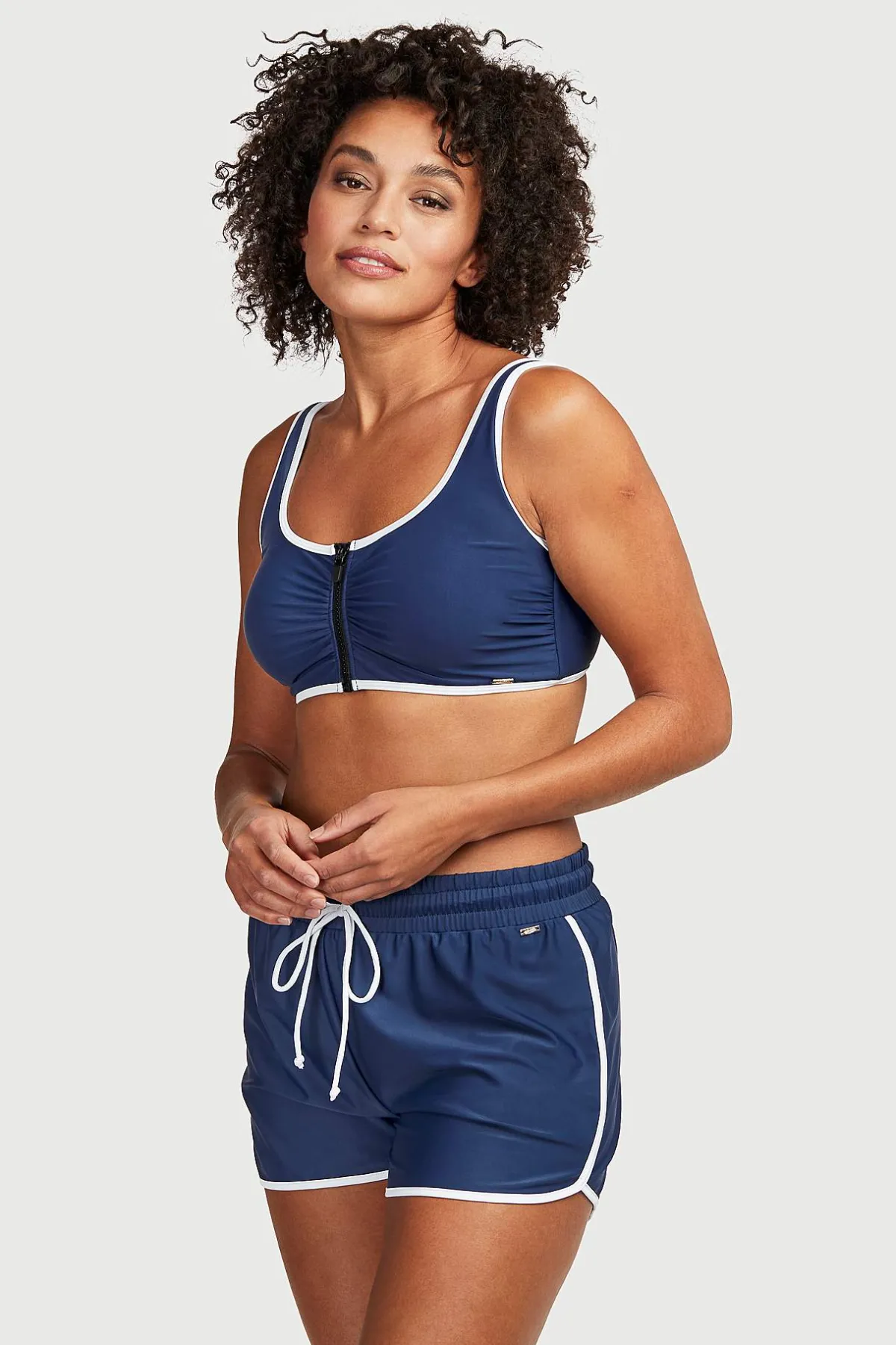• Stretchiga badshorts med inbyggd trosa.
