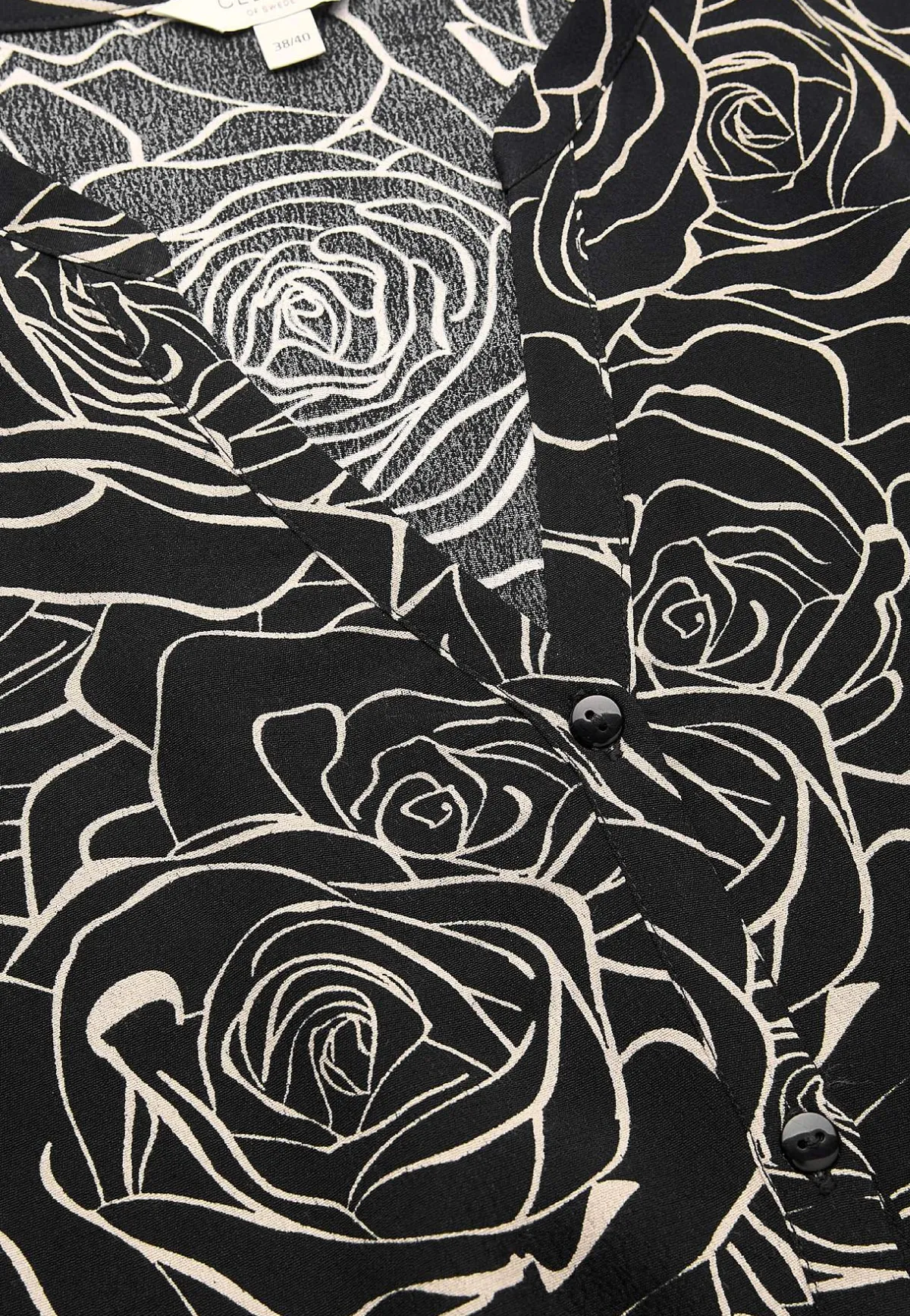 • 3/4-ärmar med knapp och smal manschett i ärmsluten.