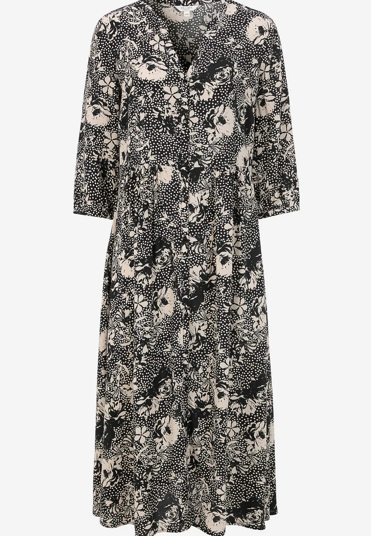 • 3/4-ärmar med knapp och smal manschett i ärmsluten med knapp.