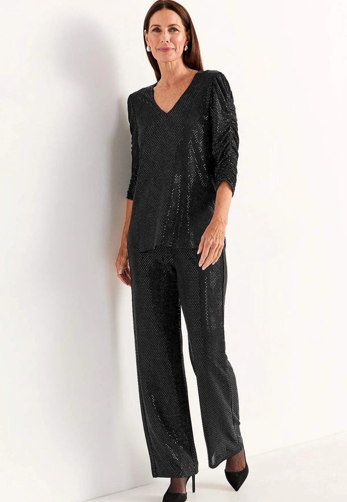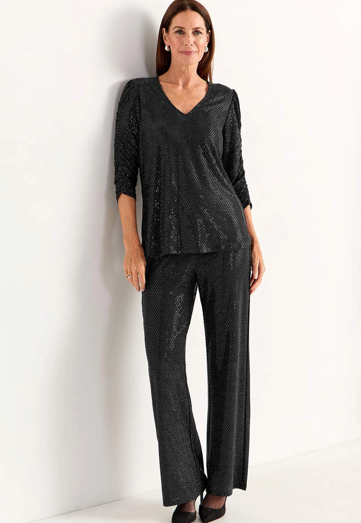 • Glittrig festbyxa med paljetter och silverfärgad glittertråd.