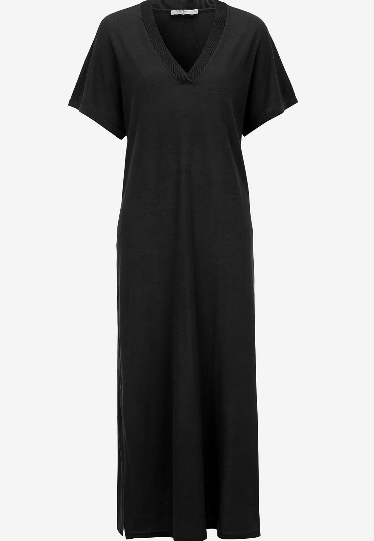 • Djup v-ringning med tät ribbstickning. Fully fashioned-stickning.