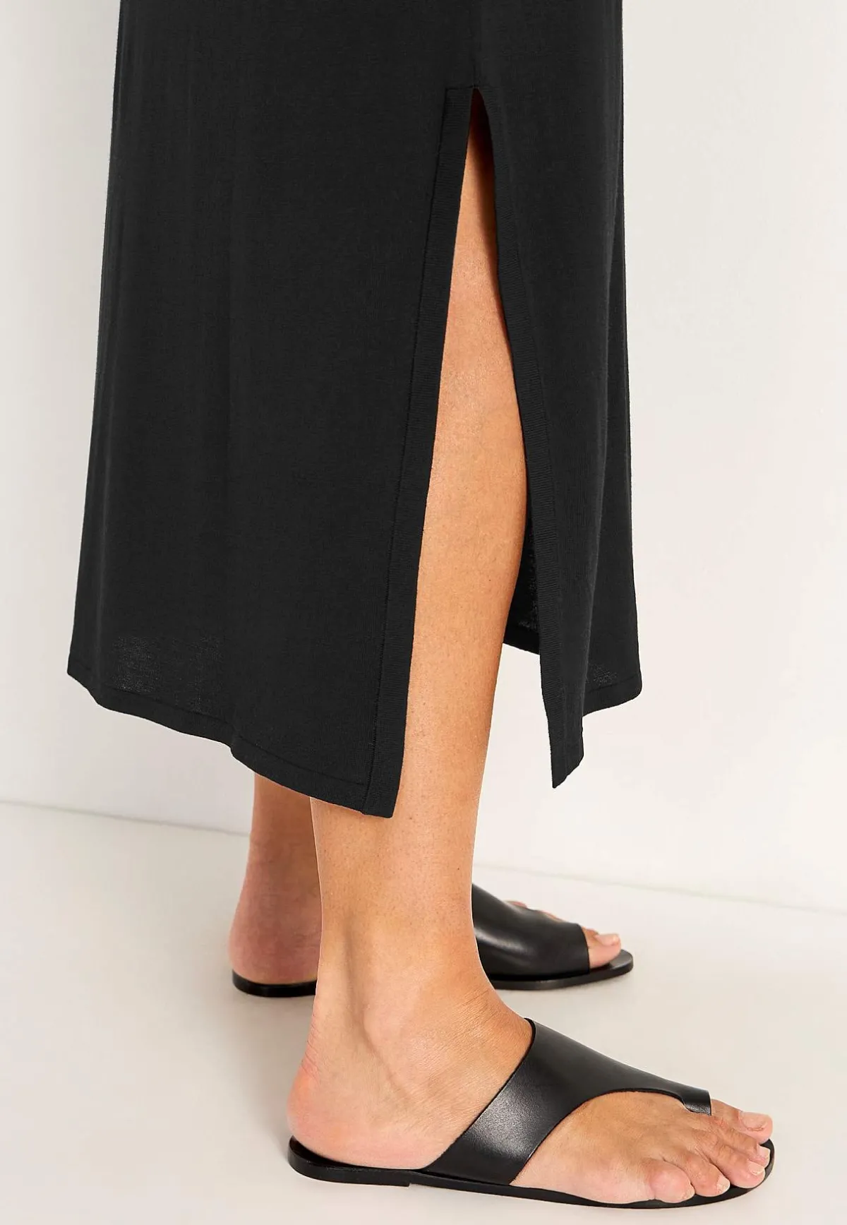 • Rak nederkant med tät ribbstickning och höga sidoslitsar.