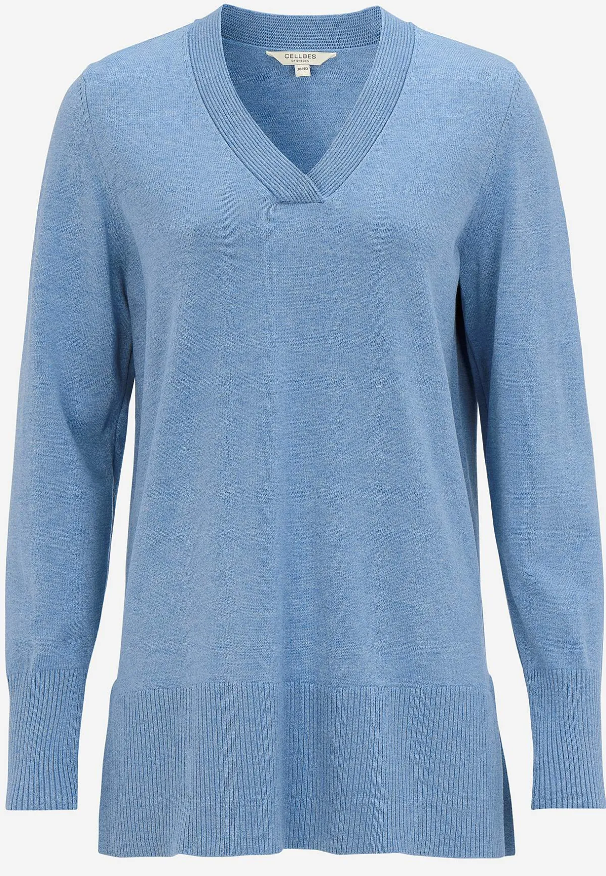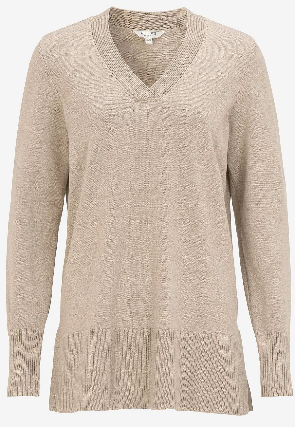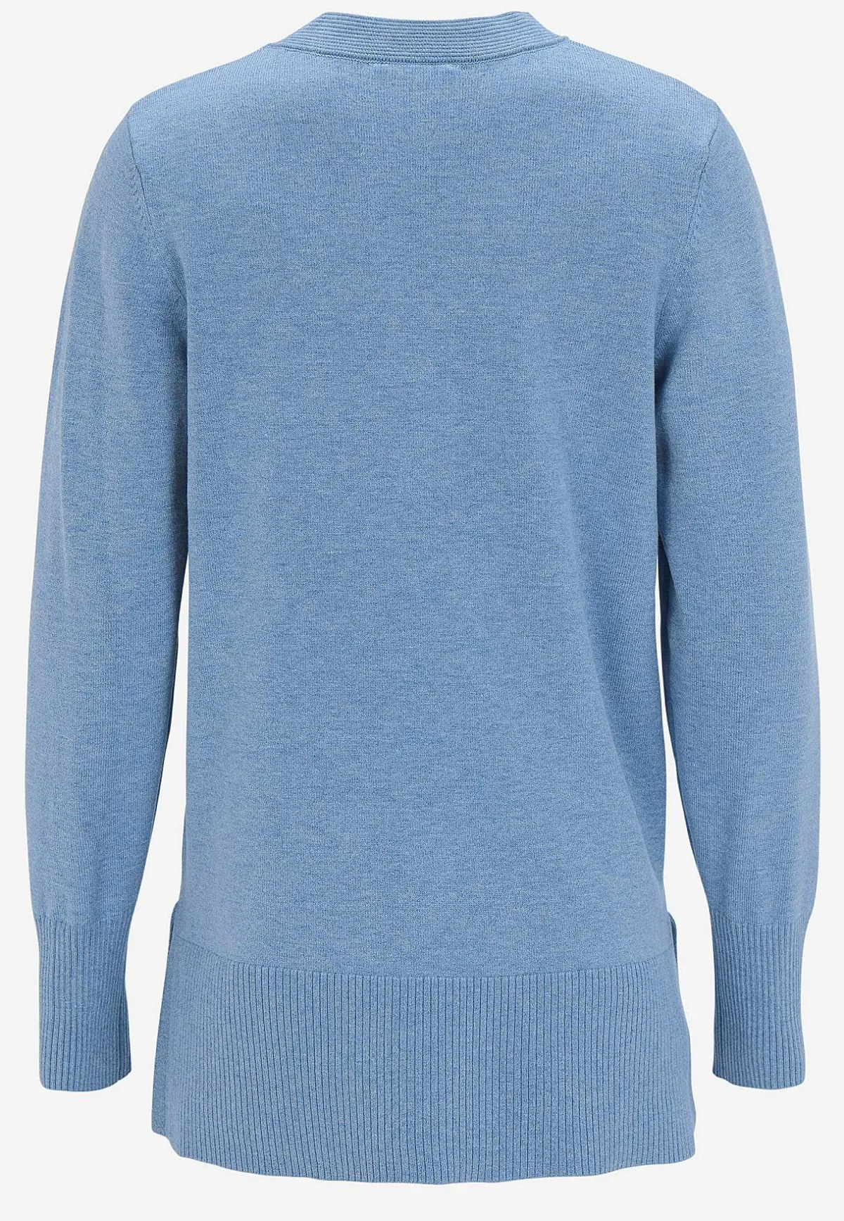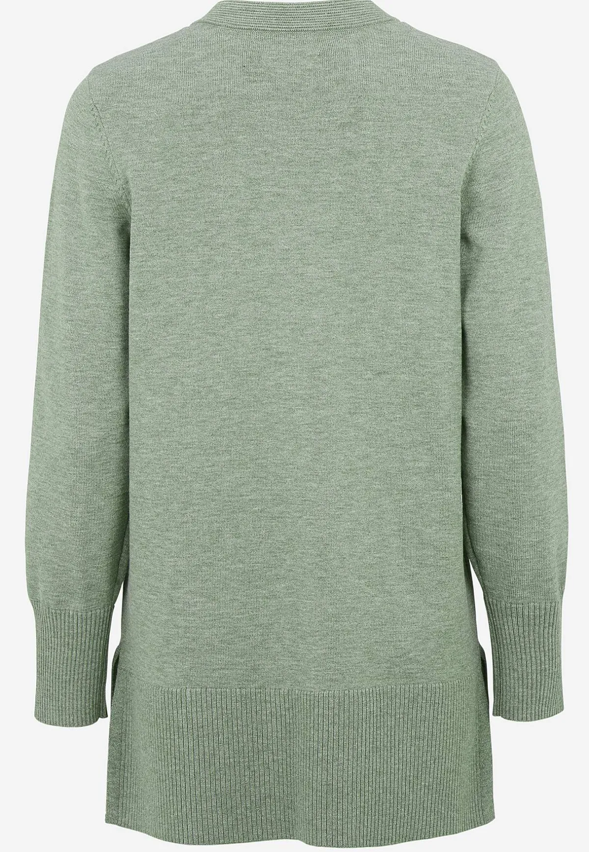 • Långa ärmar med bred ribbmudd. Fully fashioned-stickade ärmhål.