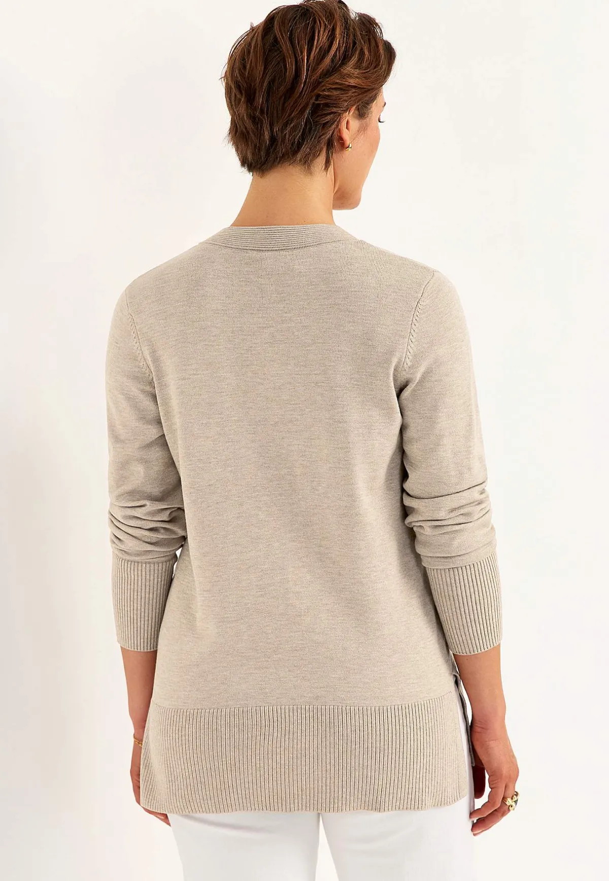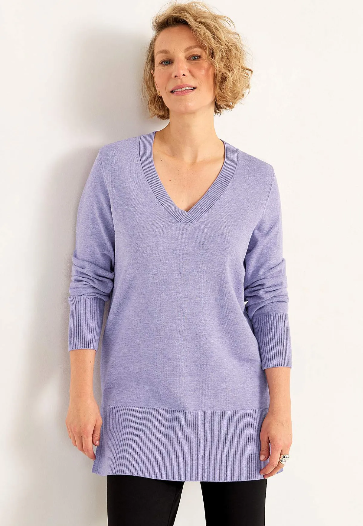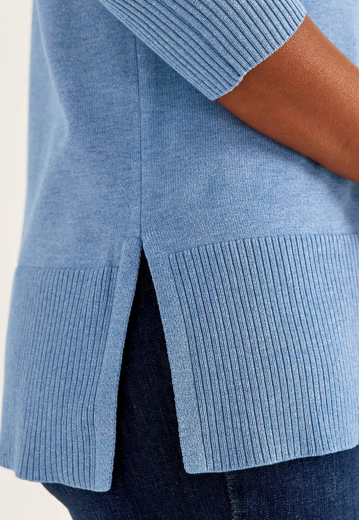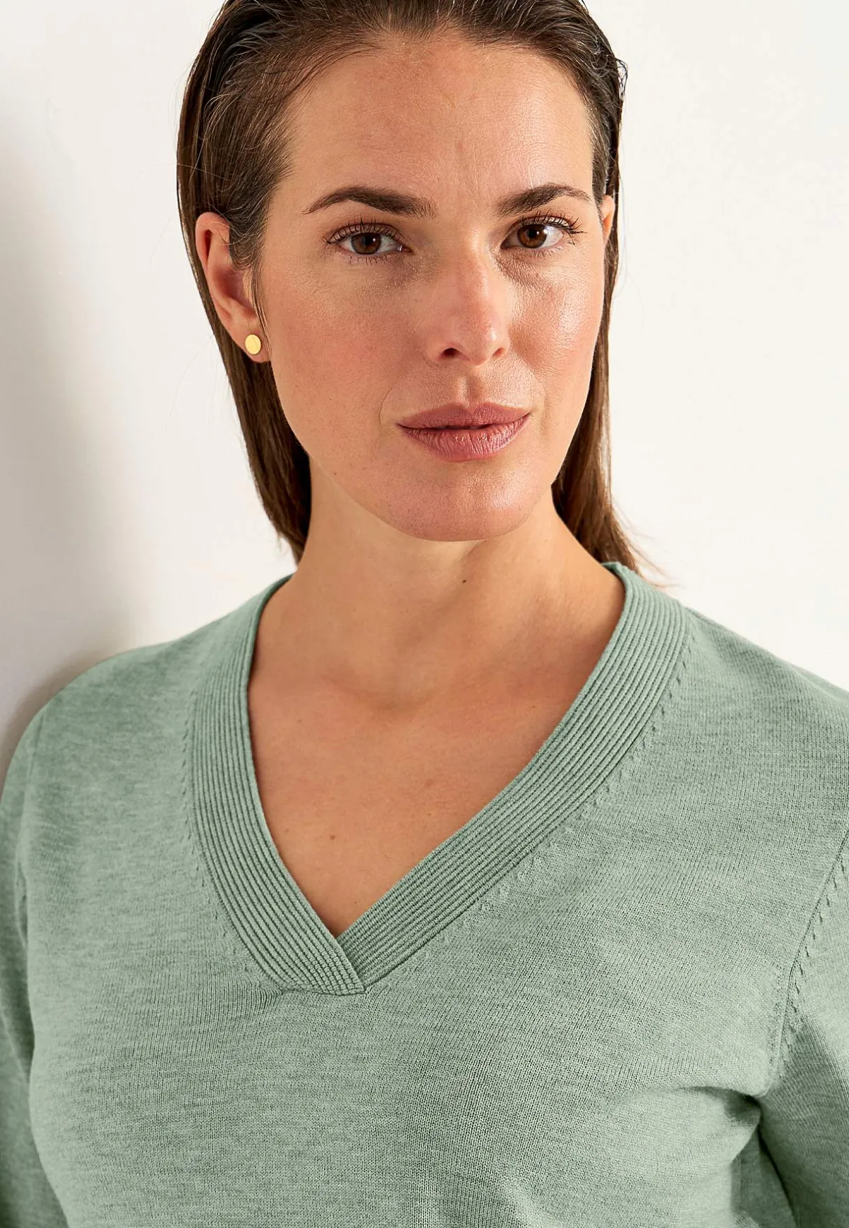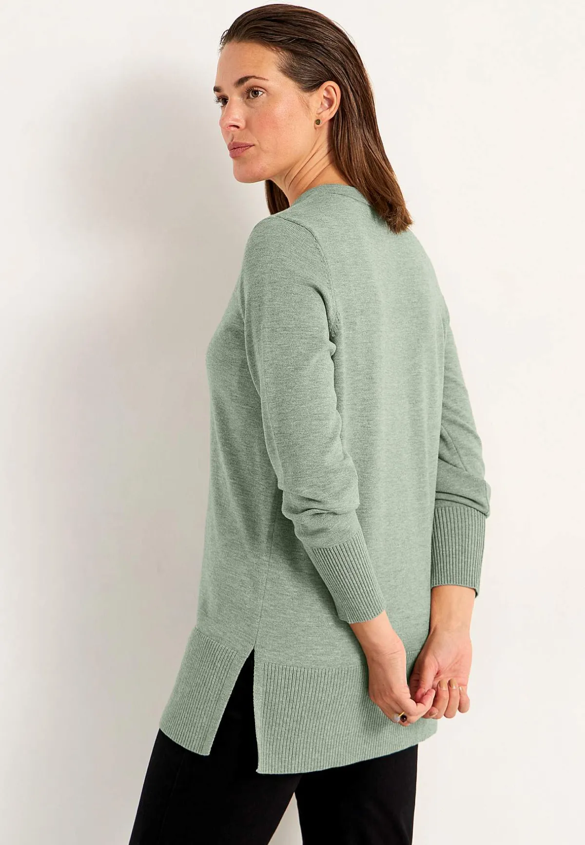 • Långa ärmar med bred ribbmudd. Fully fashioned-stickade ärmhål.