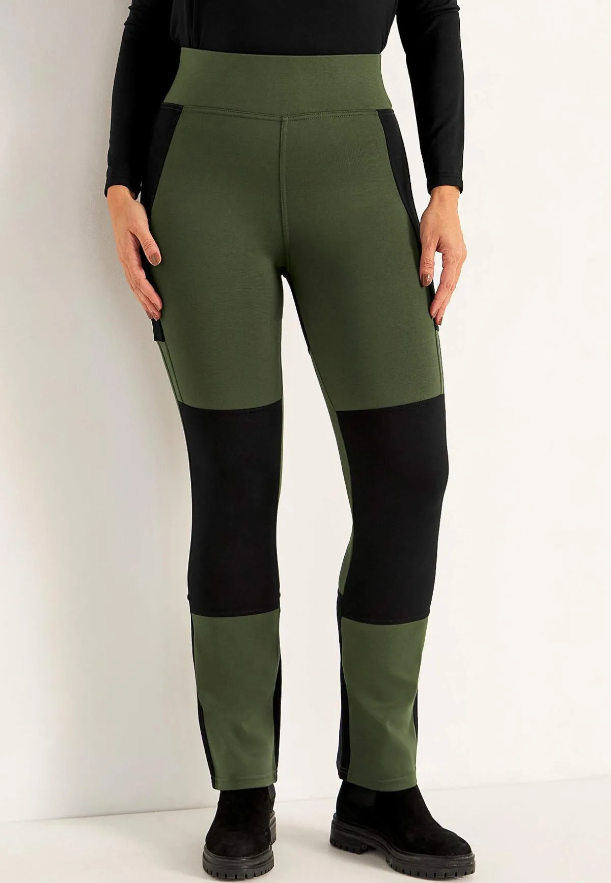 • Extra tjockt tyg med kontrastfärg på stussen, på vaden och på knäna
