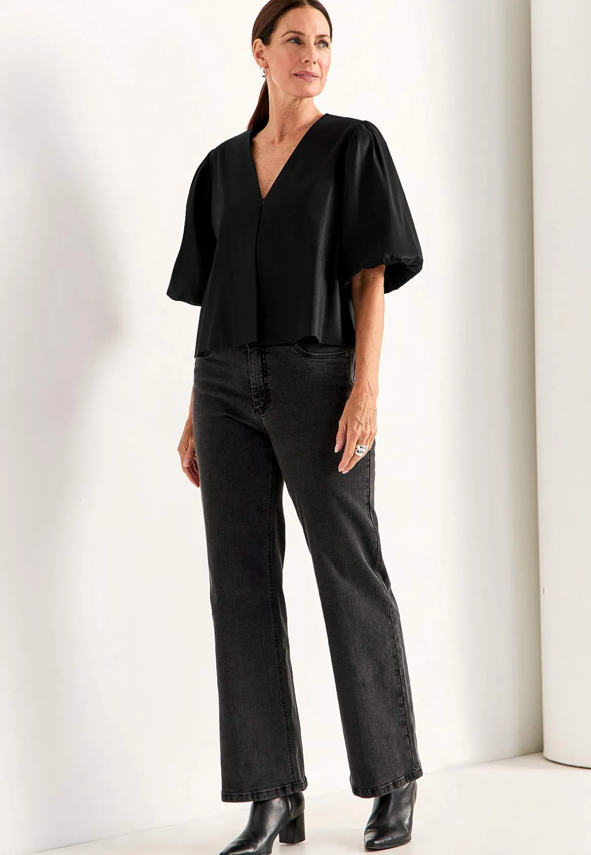 • 3/4-långa, voluminösa ballongärmar med resår i ärmsluten.