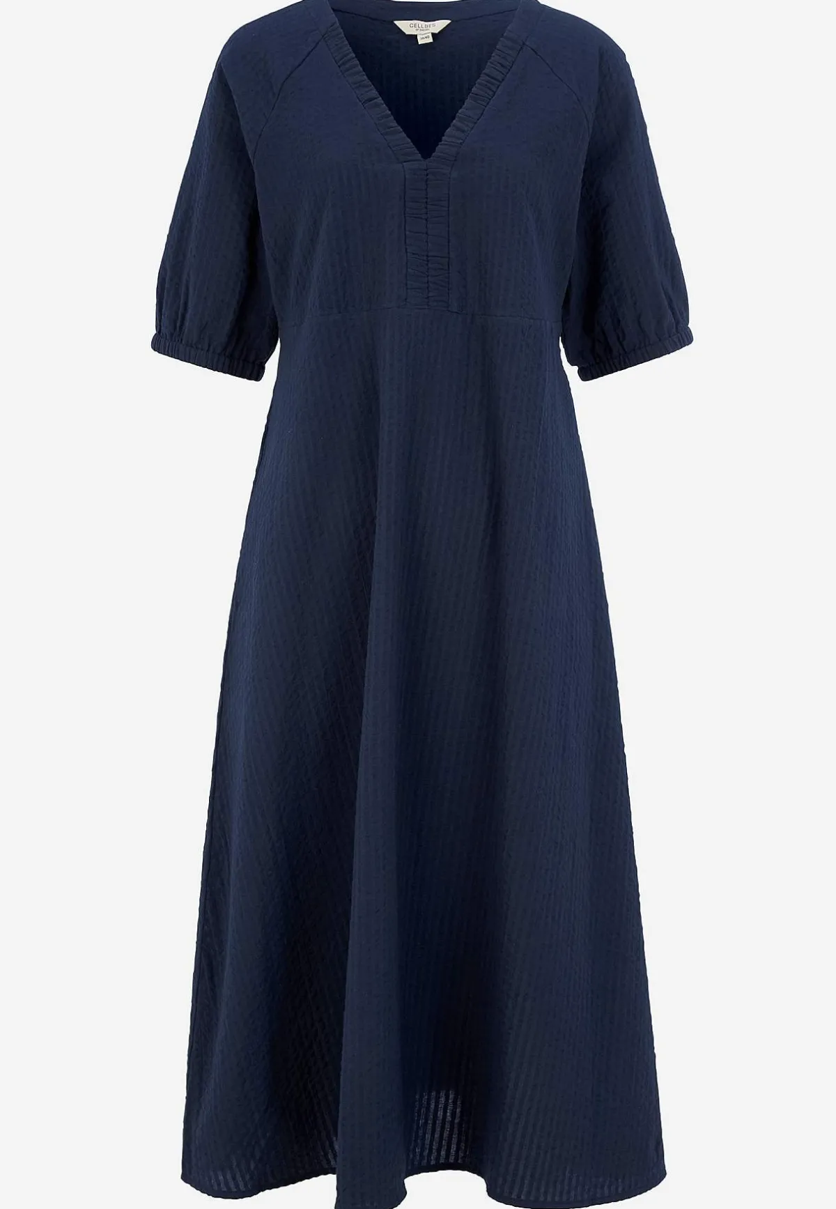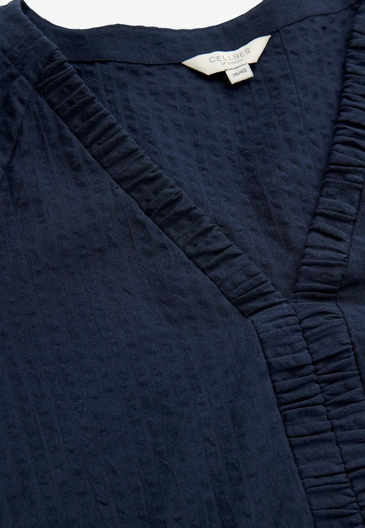 • V-ringad, rynkad halsringning.