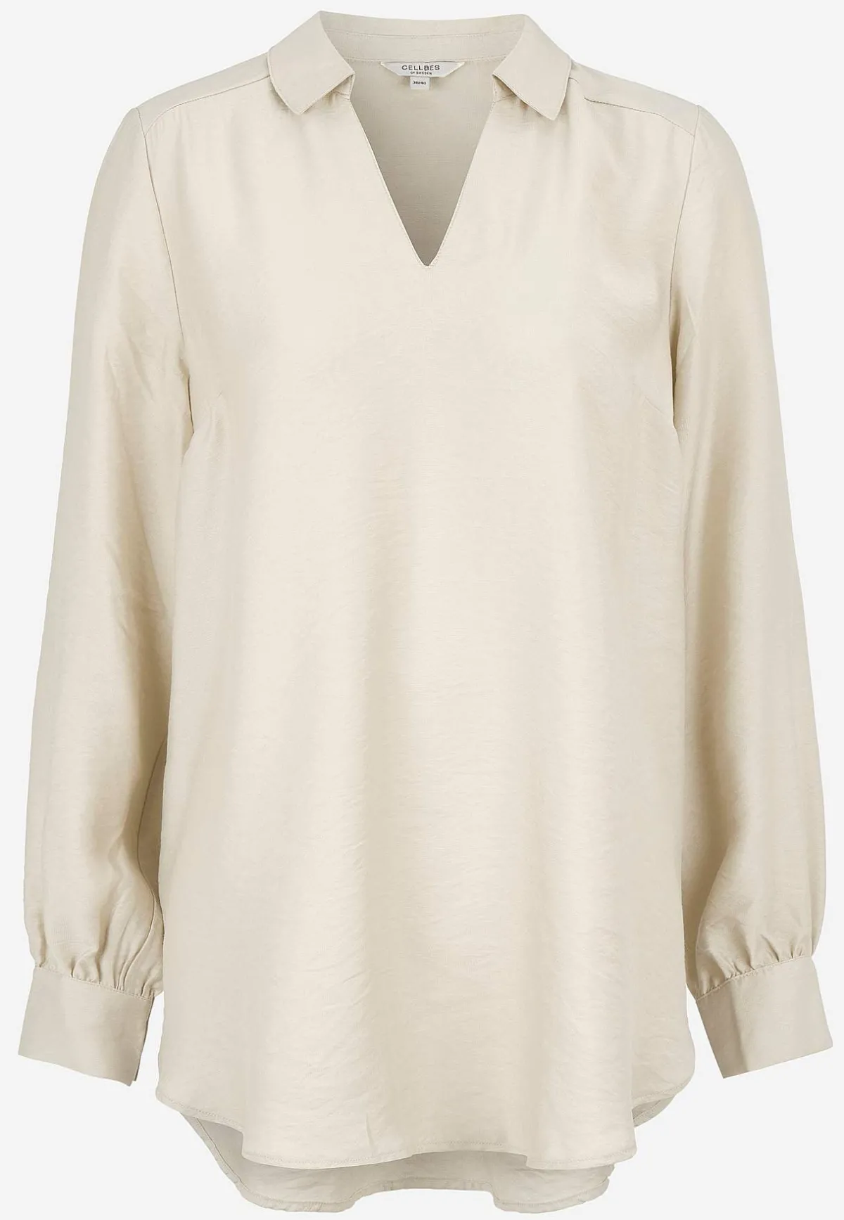• Långa ärmar med manschett, två knappar och rynk i ärmsluten.