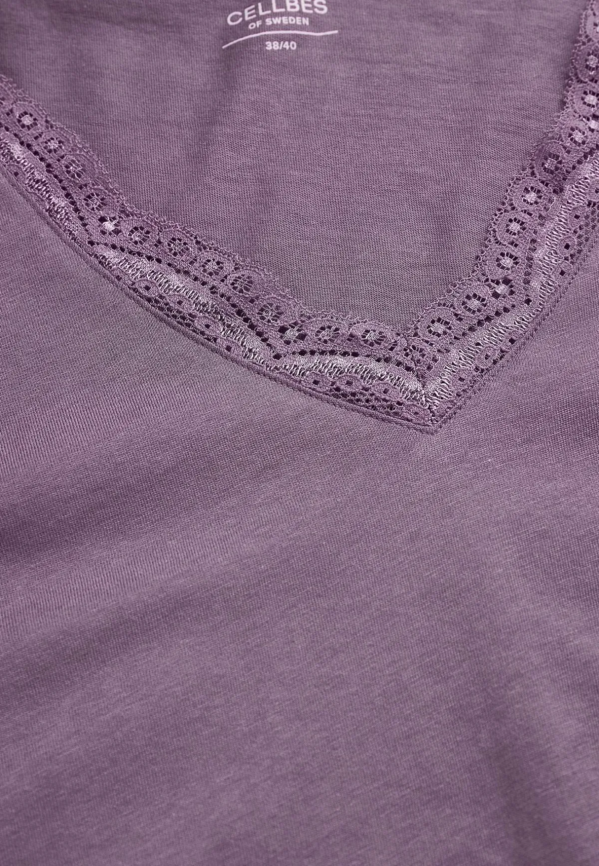 • V-ringad hals med mjuk spetskant.