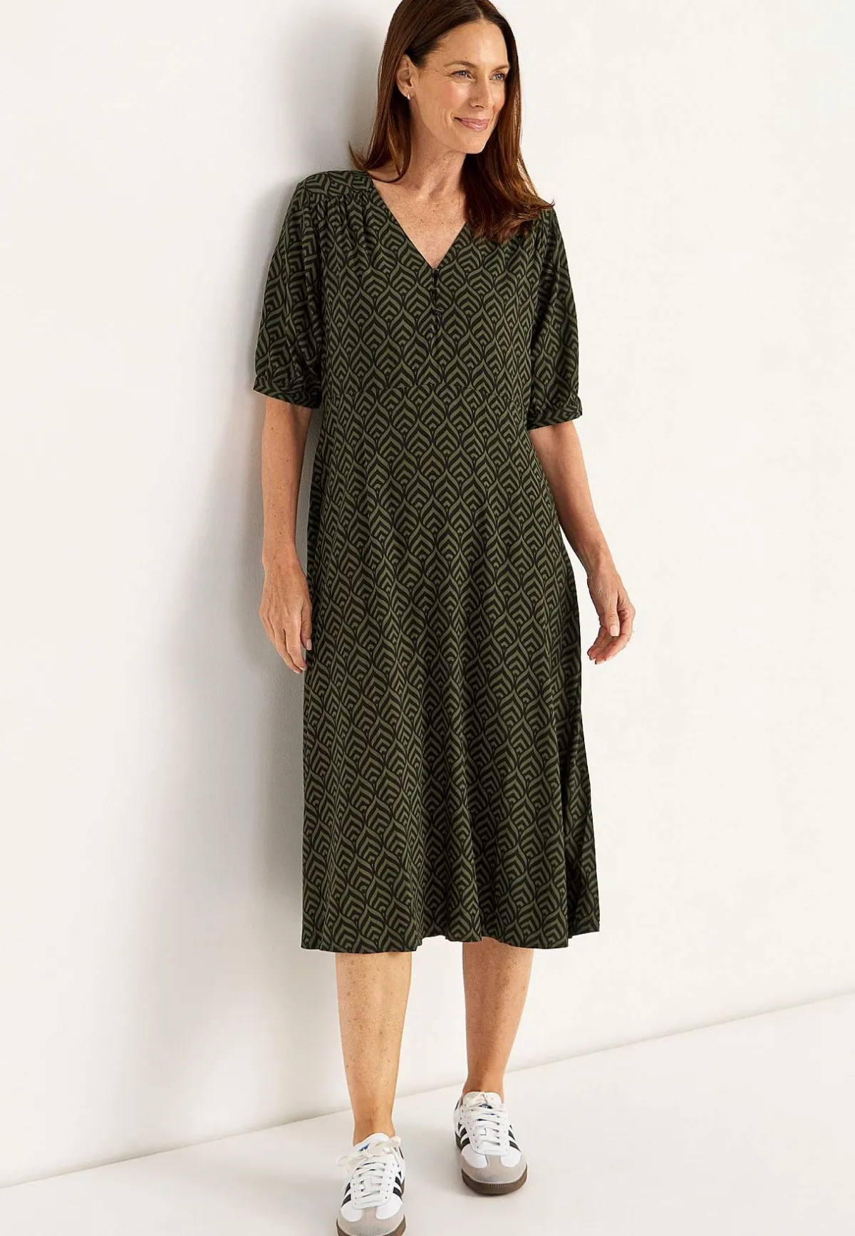 • Korta ärmar med smal manschett och knapp.