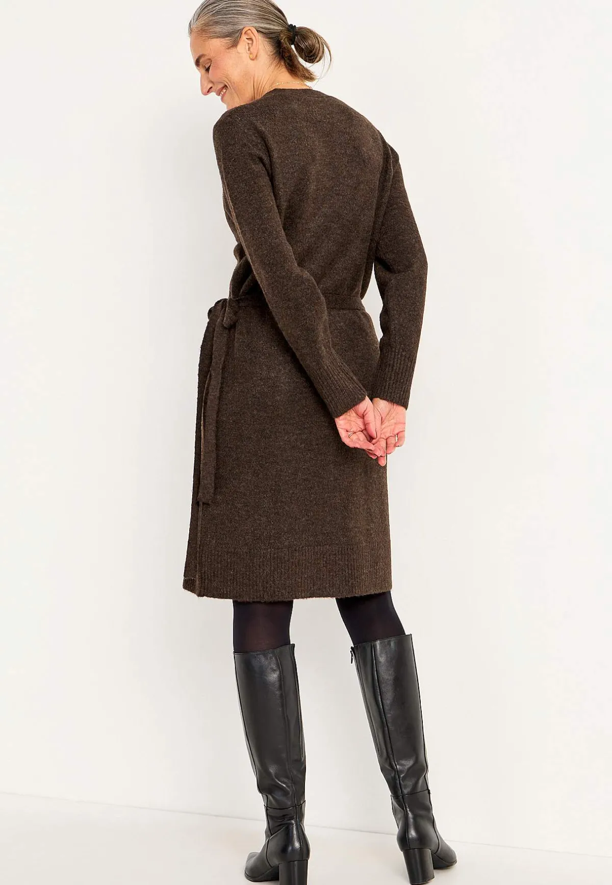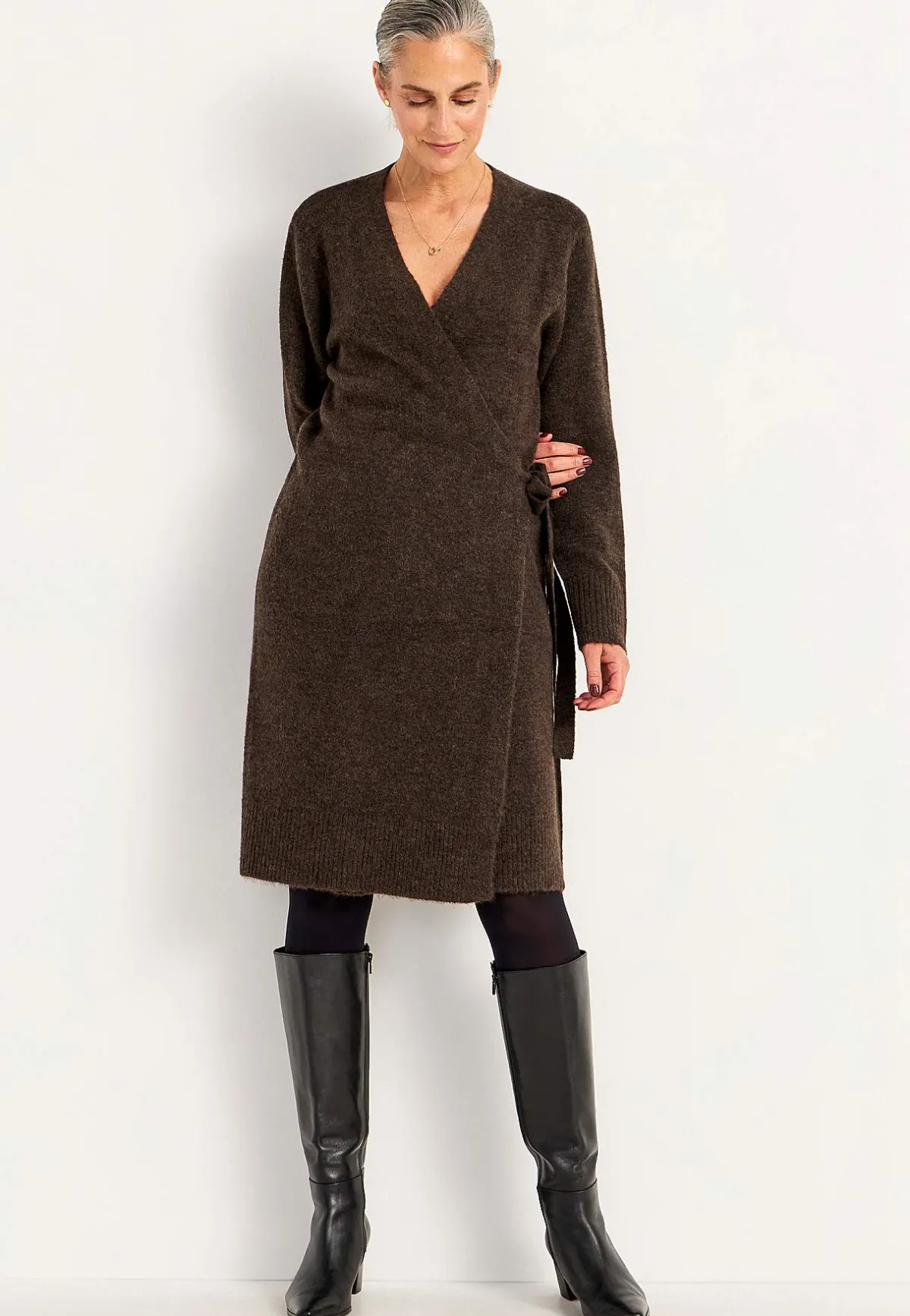 • Omlottmodell med knytband som knyts i sidan.