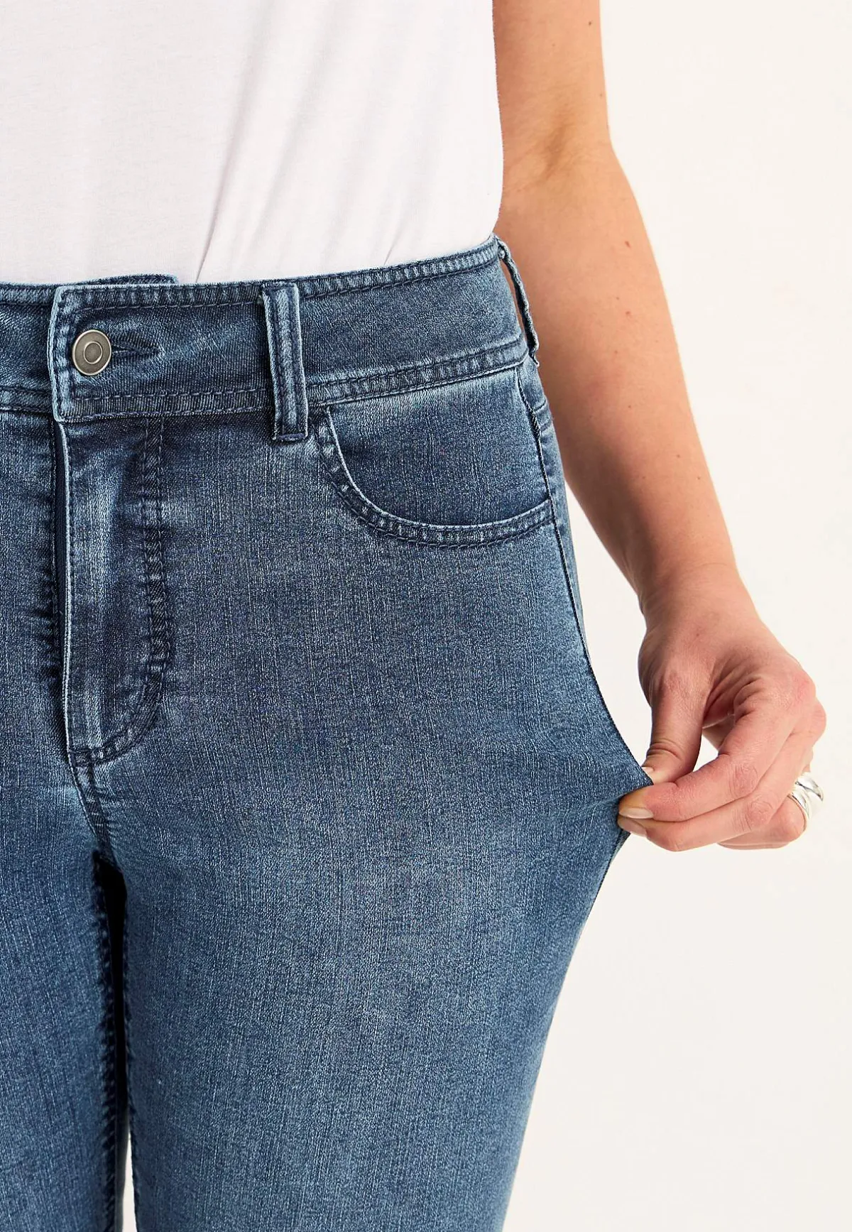 • Normalhög midja med dragkedjegylf och knapp.