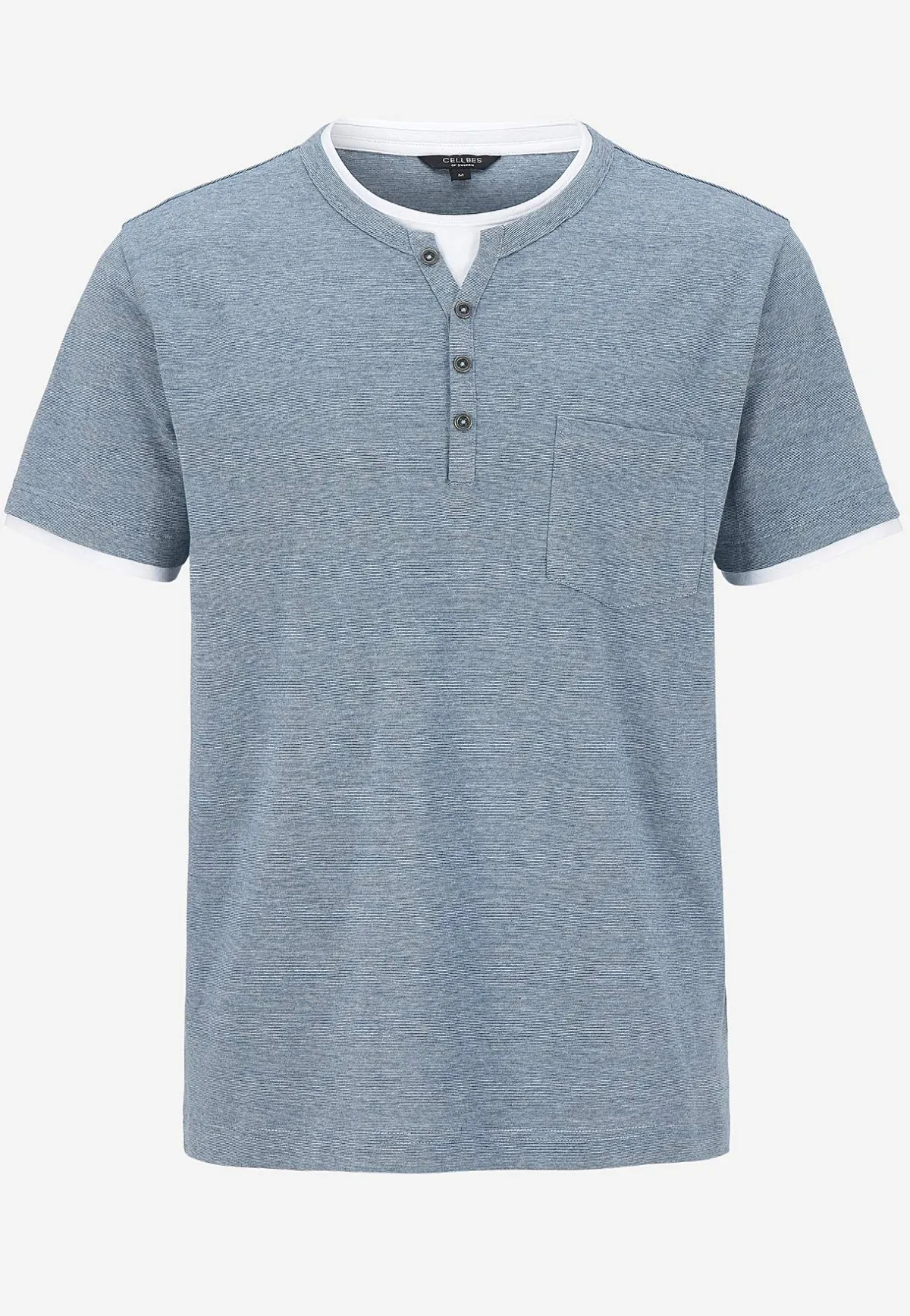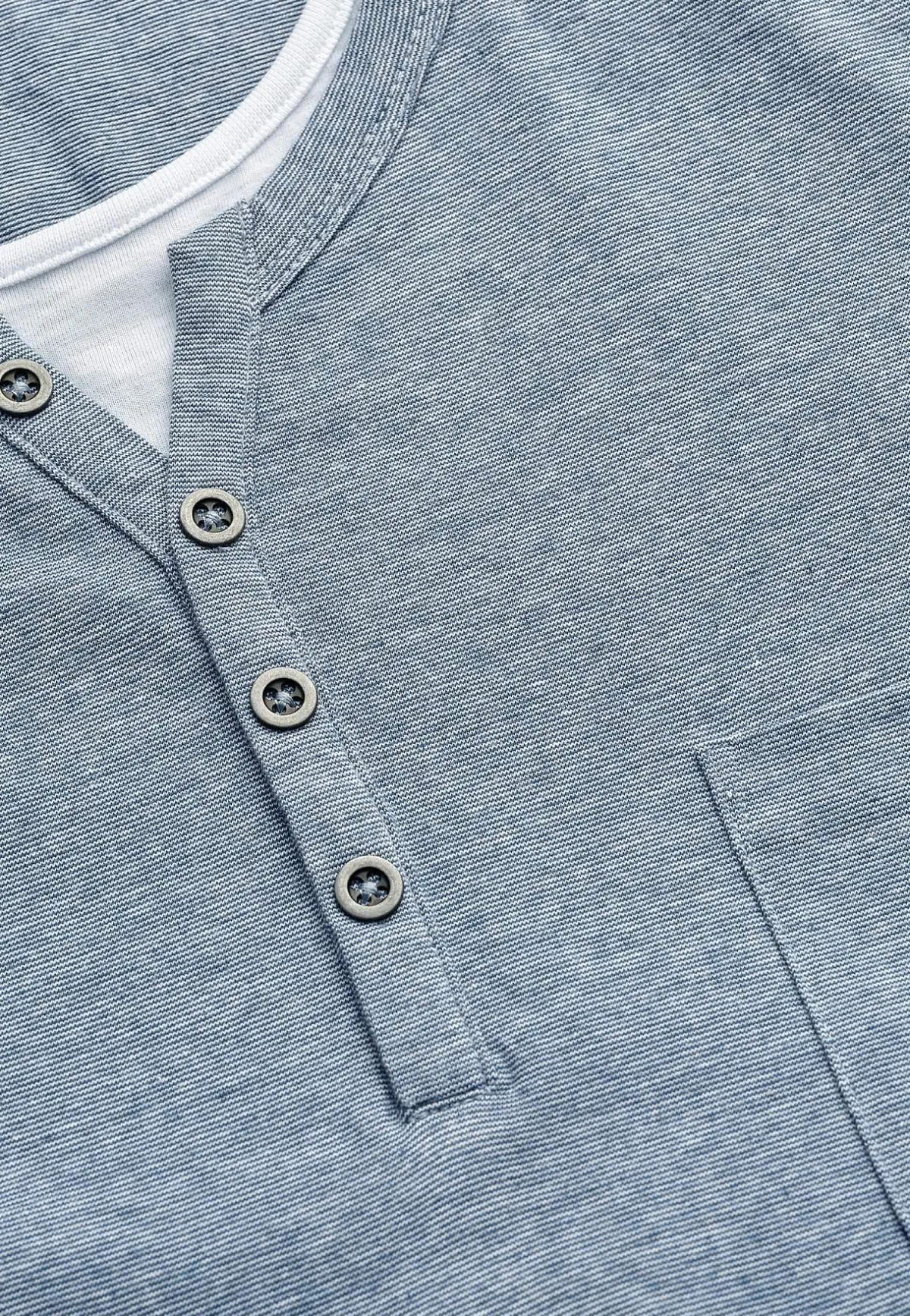 • Rund halsringning med liten v-ringning och en falsk knappöppning.