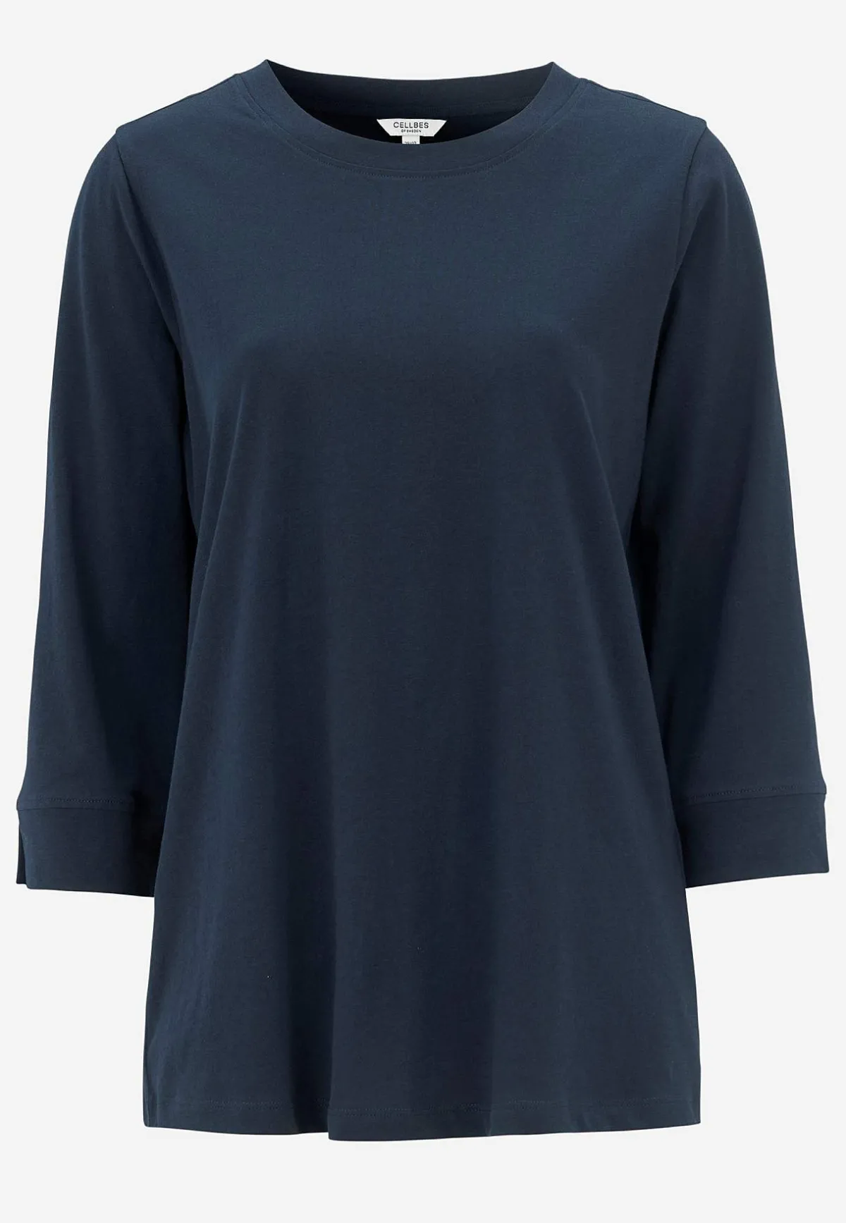 • 3/4-långa ärmar med trikåmudd med slits i ärmsluten.