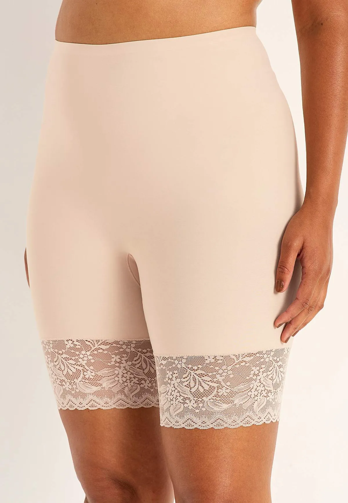 • Mjuk, dekorativ, elastisk spets i benöppningen.