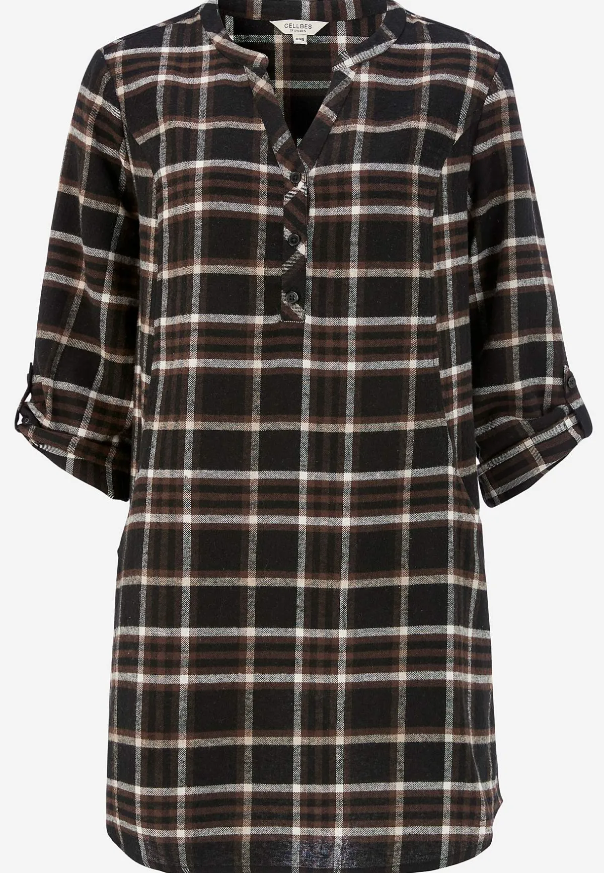 • 3/4-långa, uppvikbara ärmar med slejf och knapp.