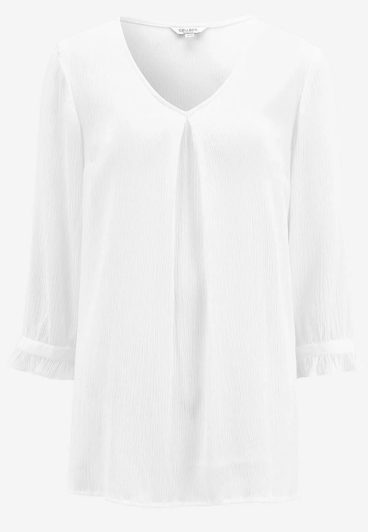 • 3/4-långa ärmar med smal manschett med knapp och romantisk volangkant.