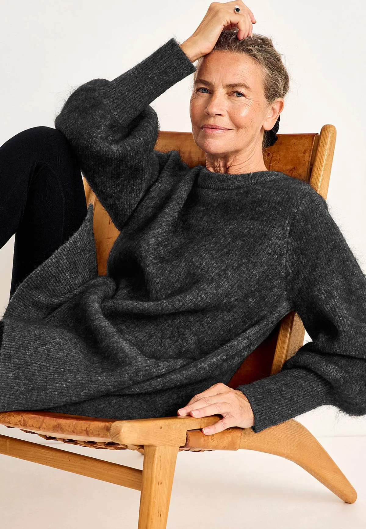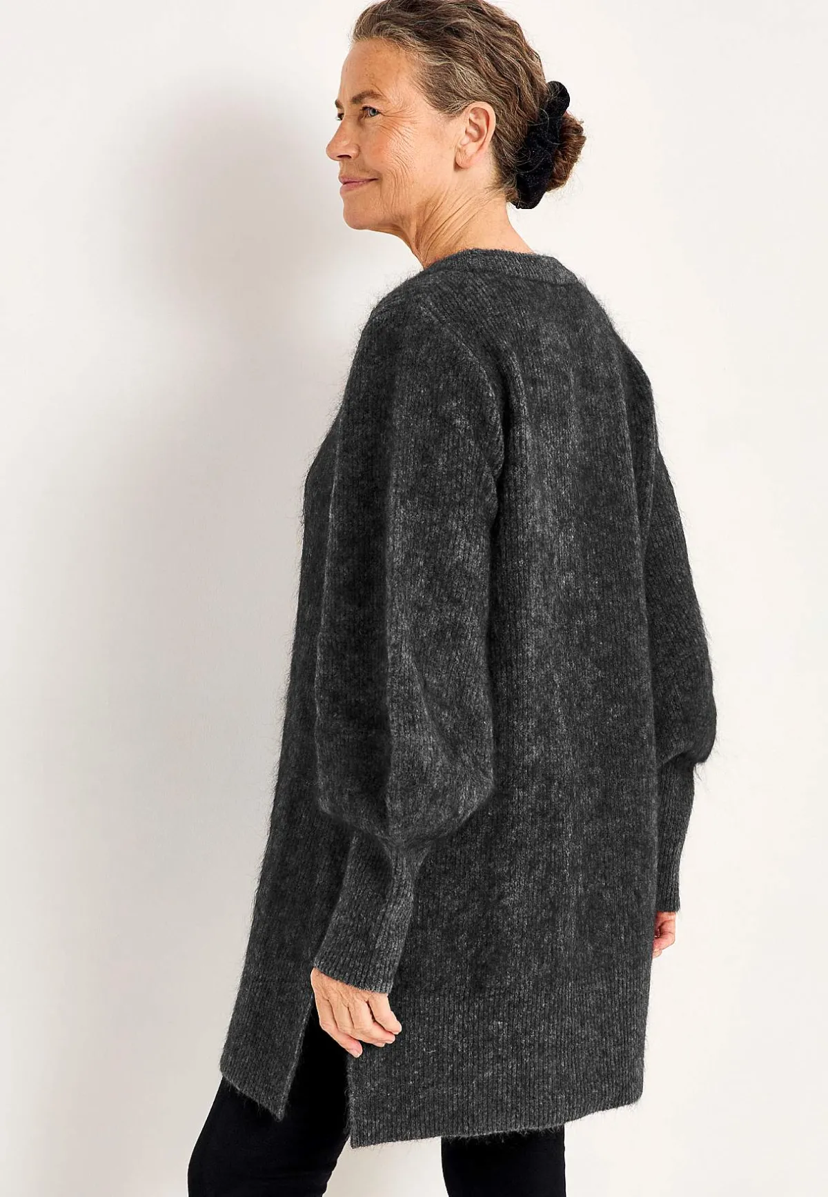 • Lång puffärm med ribbstickad, extra bred mudd.