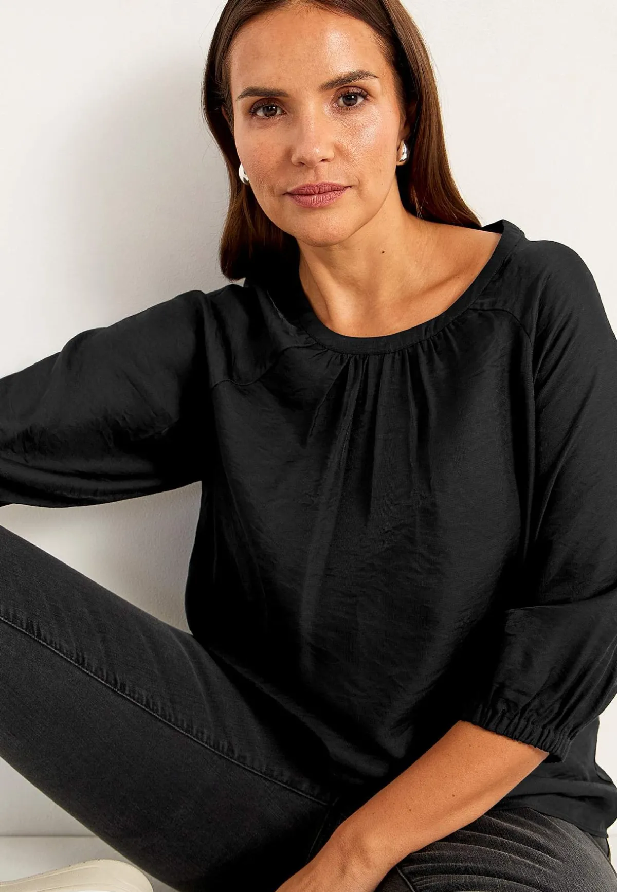 • 3/4-långa raglanärmar med resår i ärmsluten.