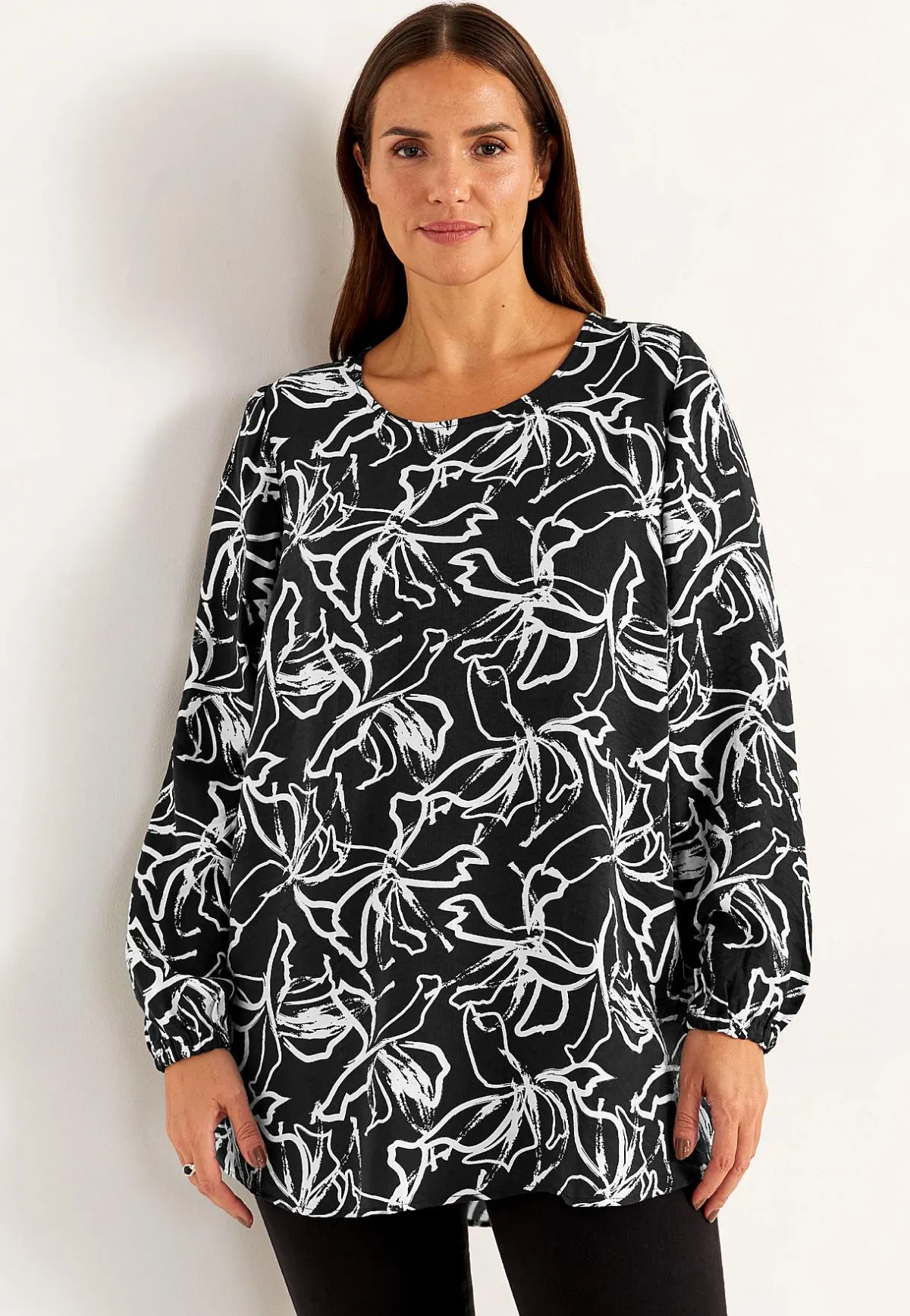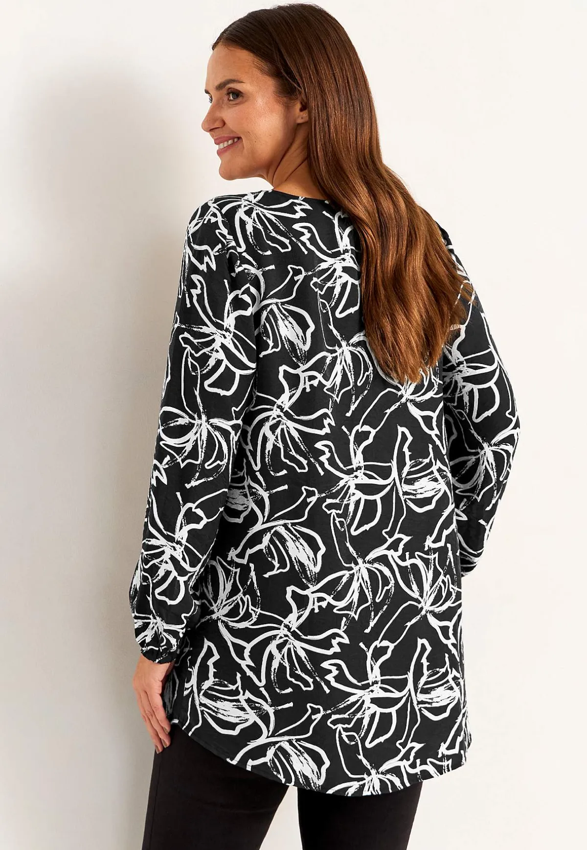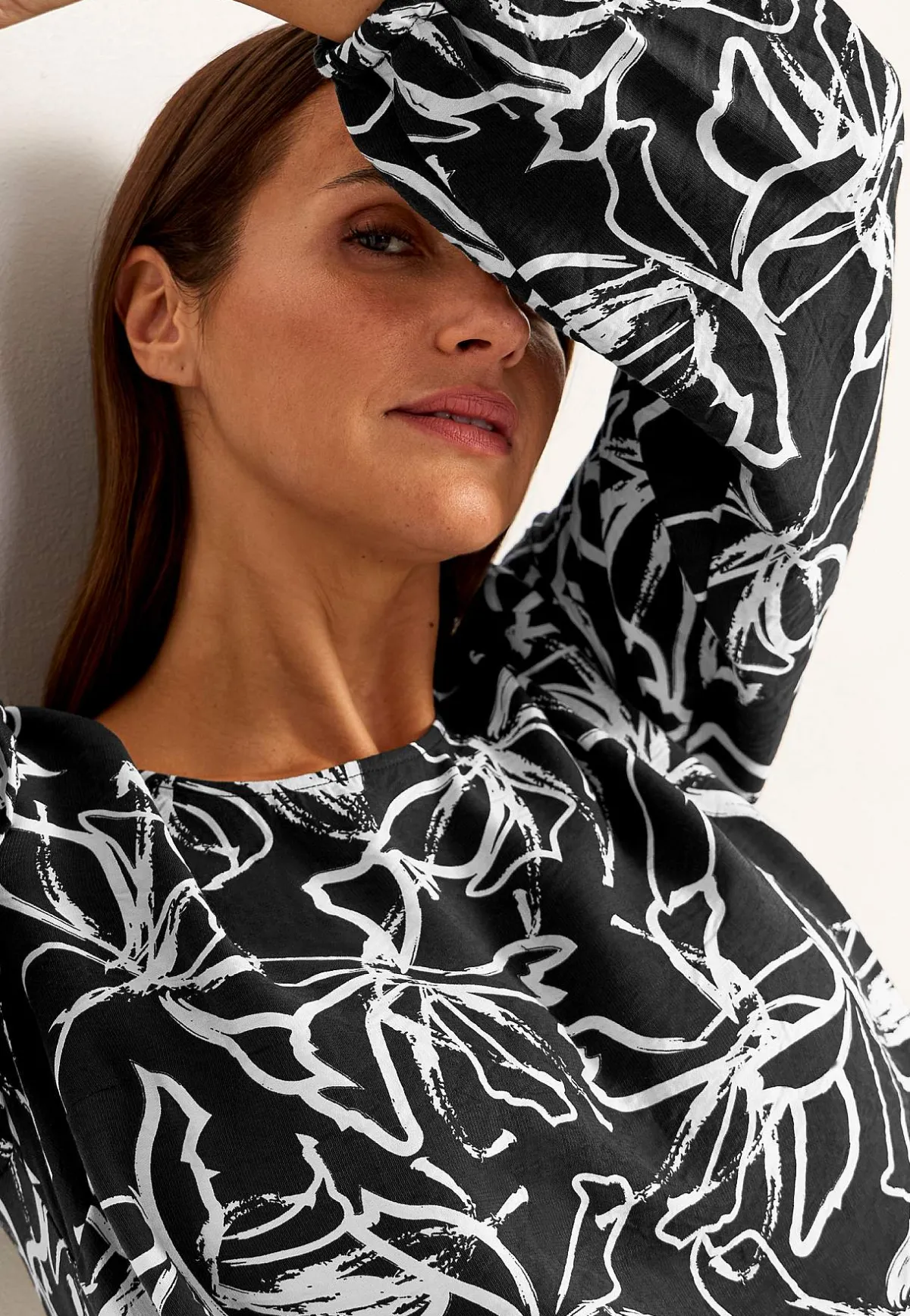 • Långa, vida ärmar med resår i ärmsluten.