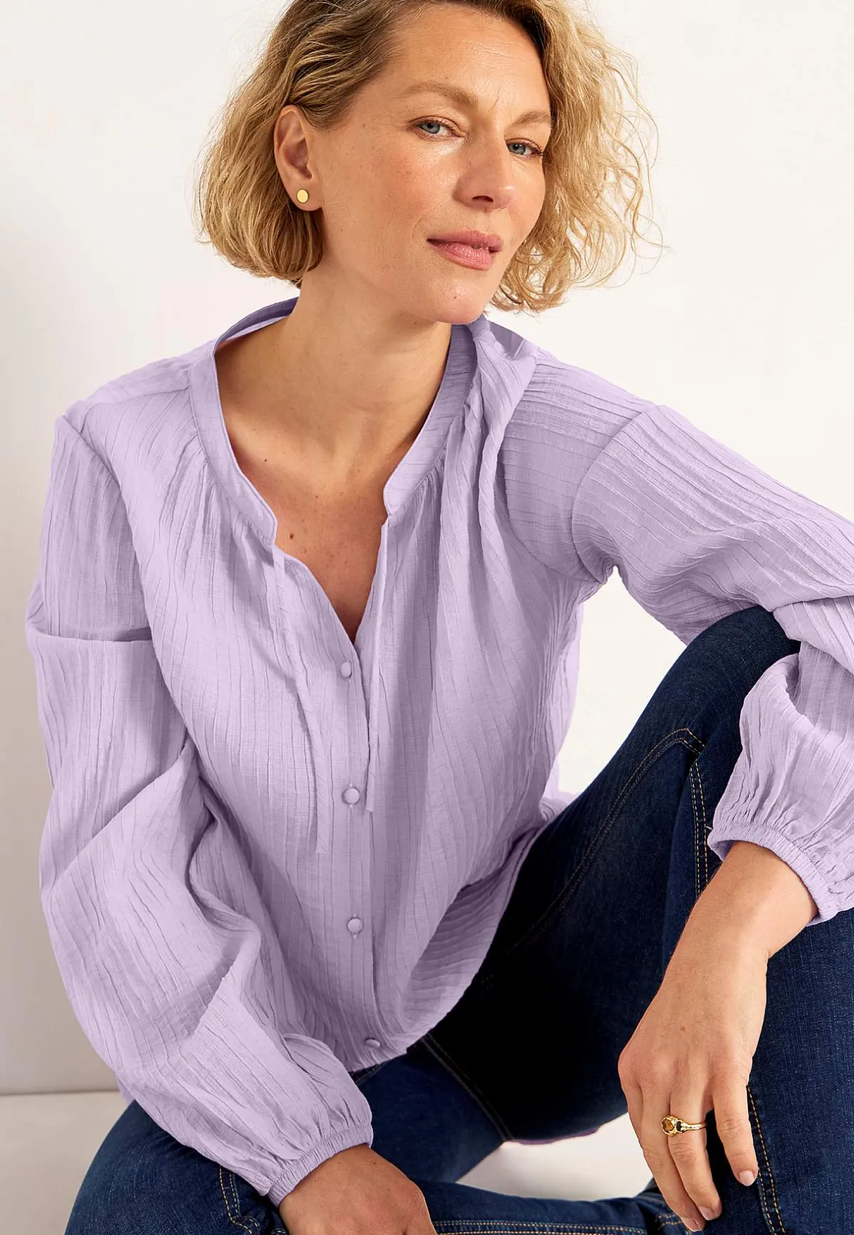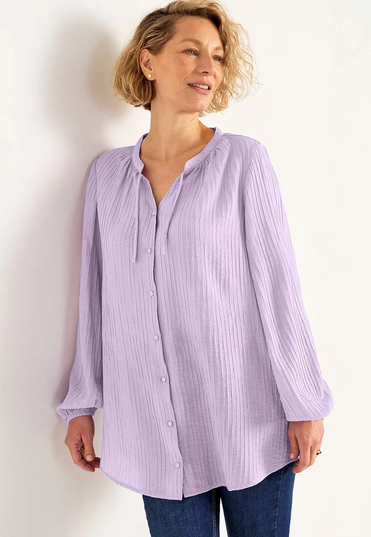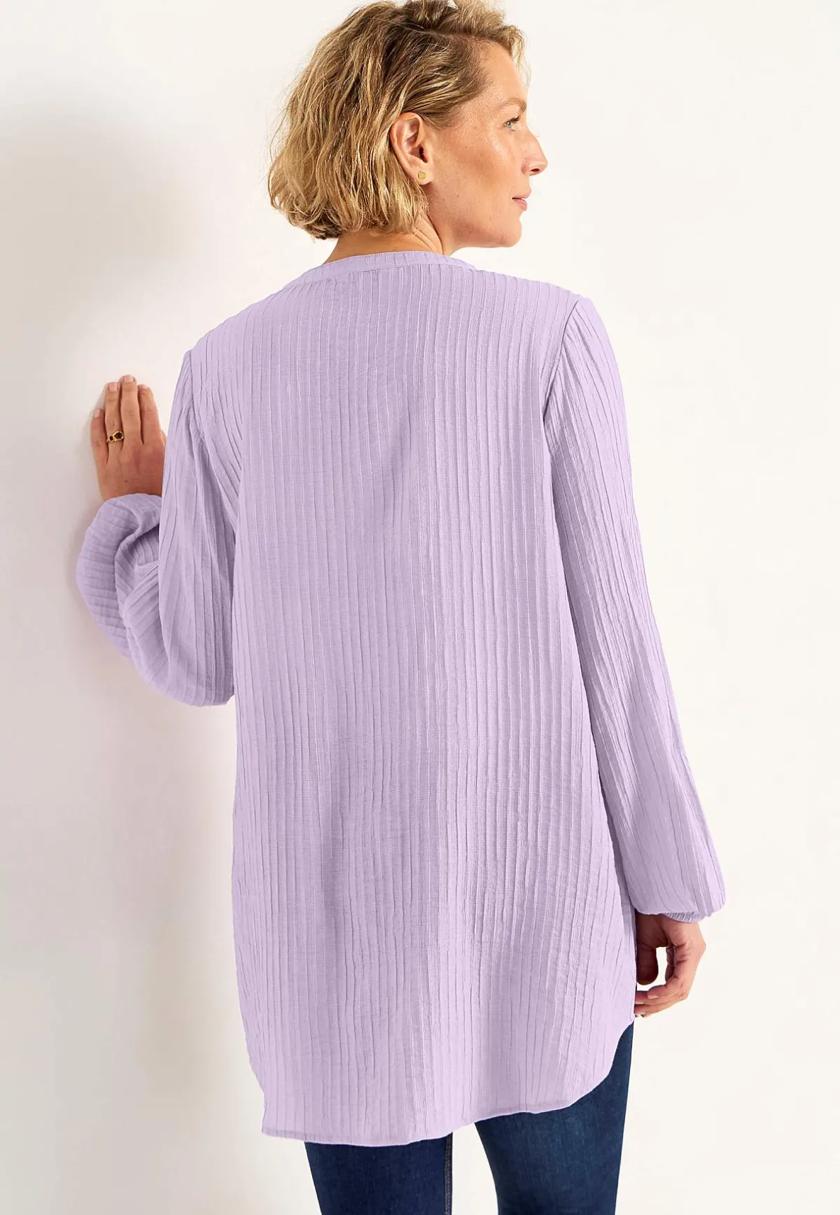 • Långa, vida ärmar med resår i ärmsluten.