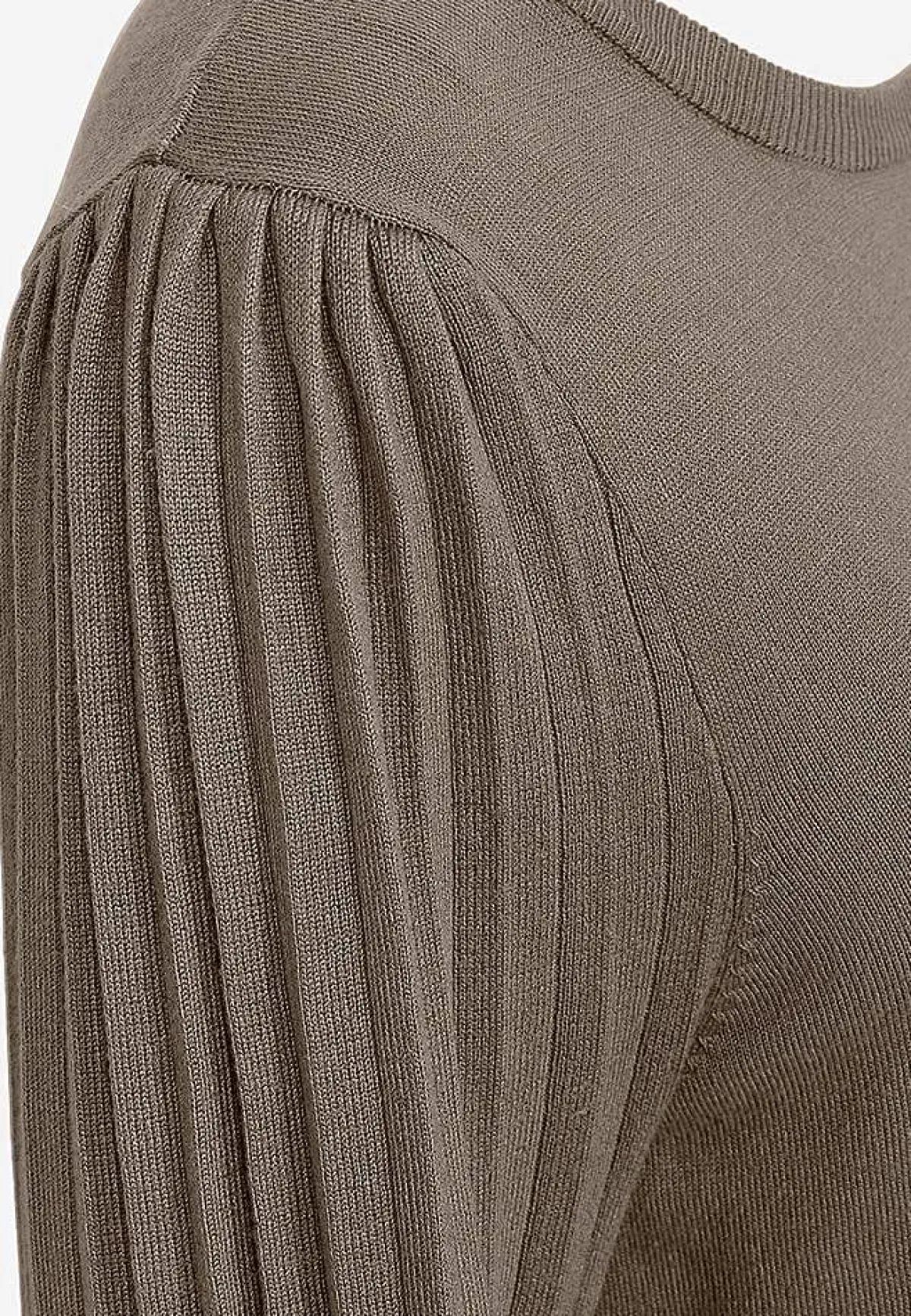 • Långa, plisserade ärmar med ribbmudd i ärmsluten.