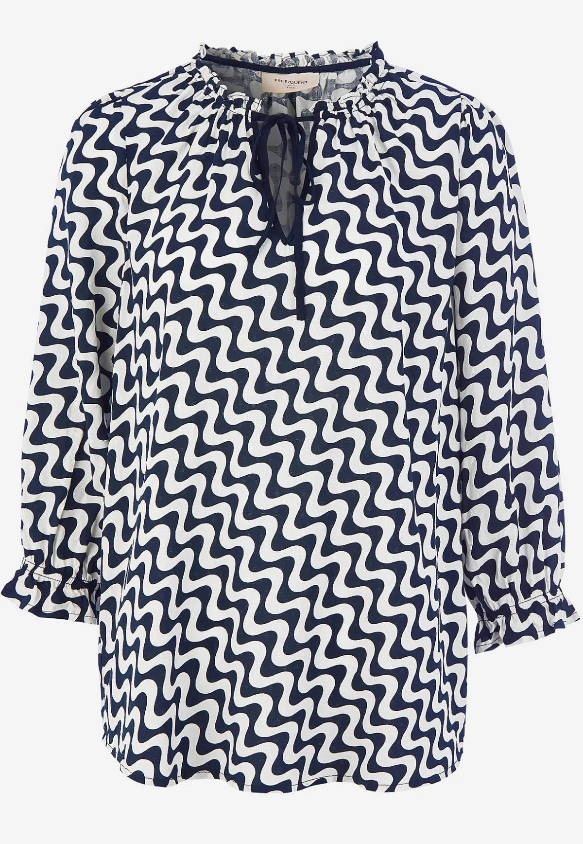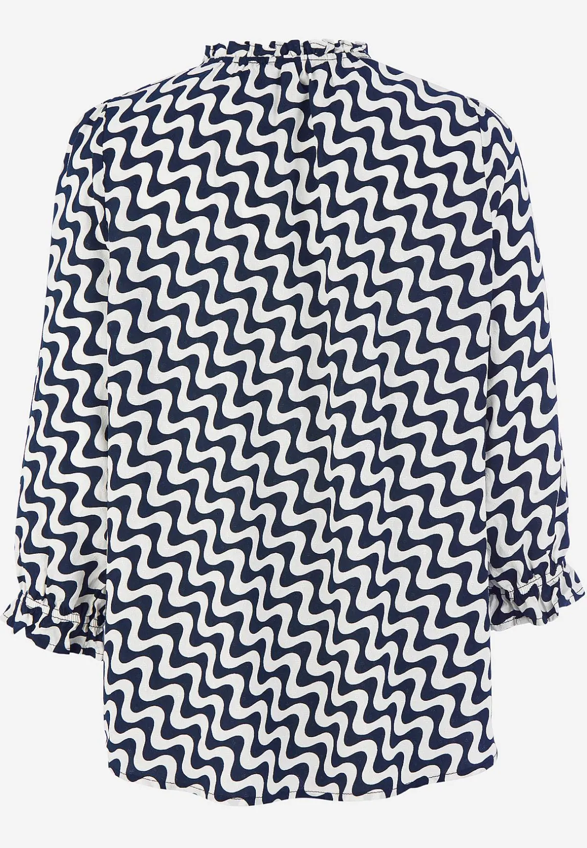 • 3/4-långa, vida ärmar med resår och volang i ärmsluten.