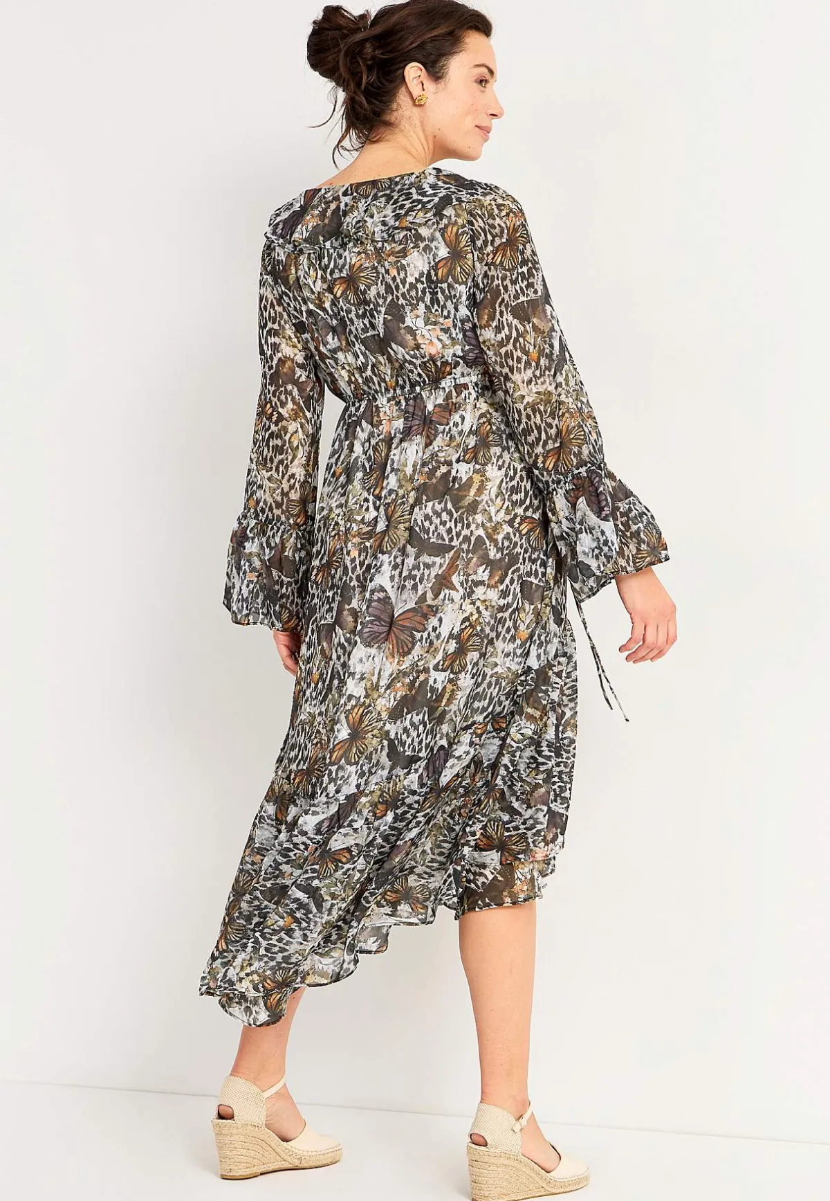• Långa, skira ärmar med volang och justerbar snörning.