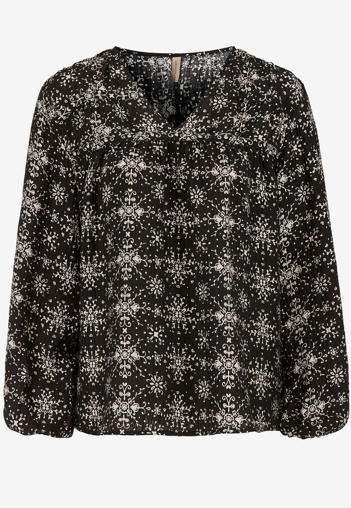 • Mönstrad, vävd blus med lätt krinklat material.