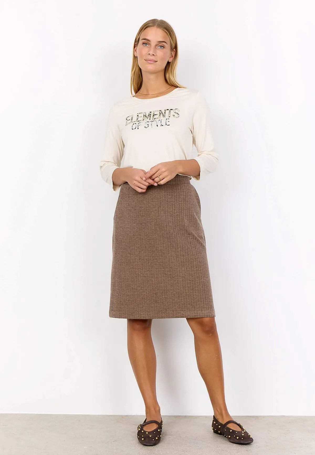 • Mjuk kjol i lite kraftigare trikå.