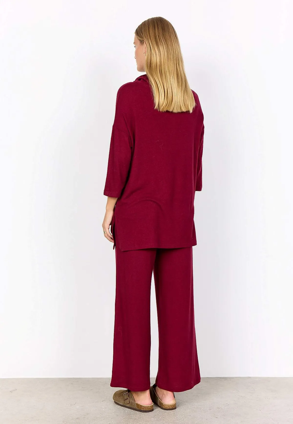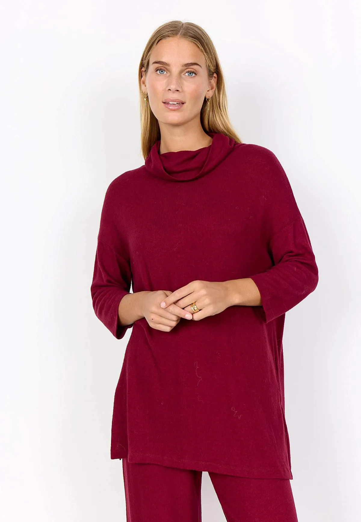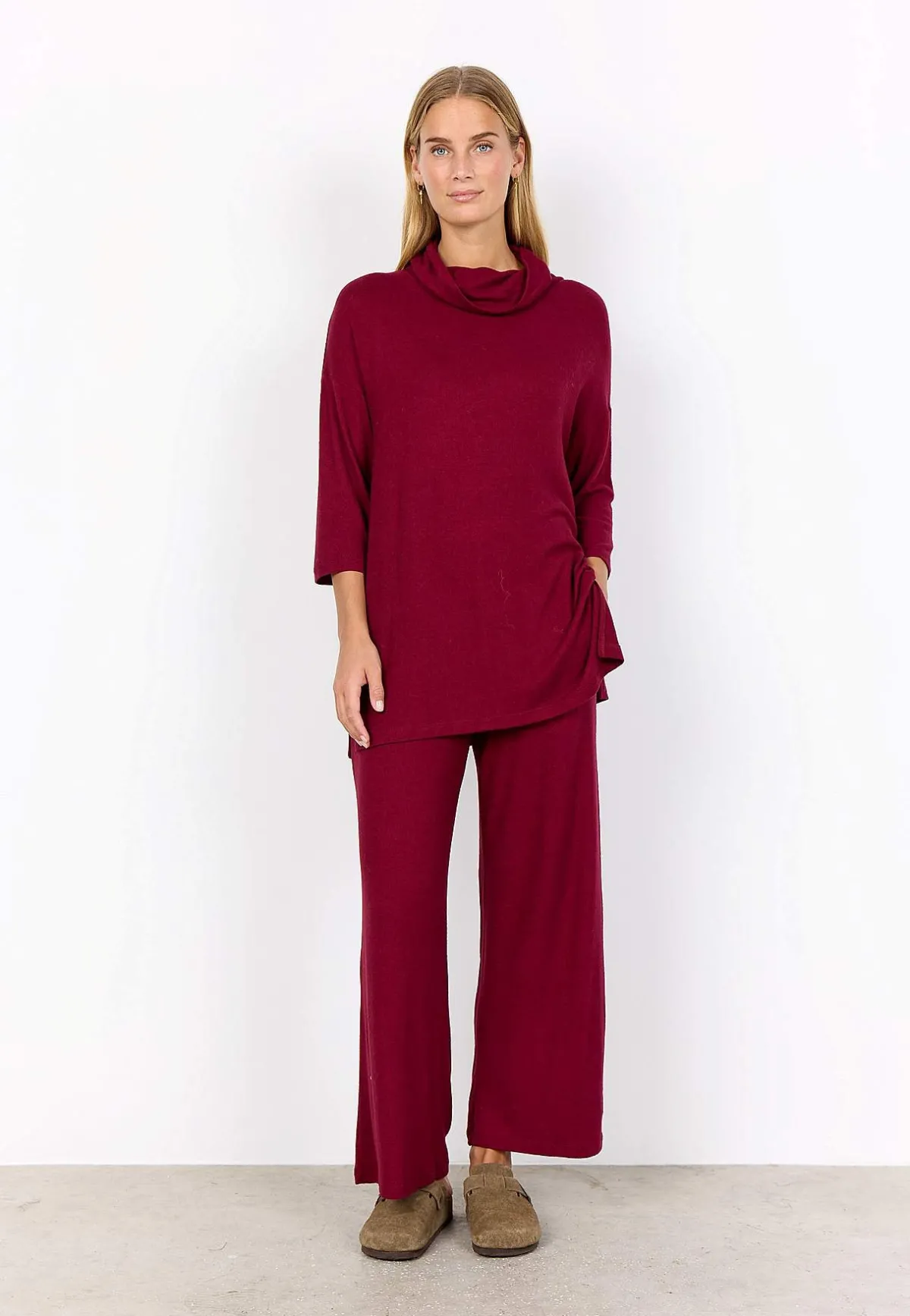 • Superskön modell i mjuk trikå med borstad yta.