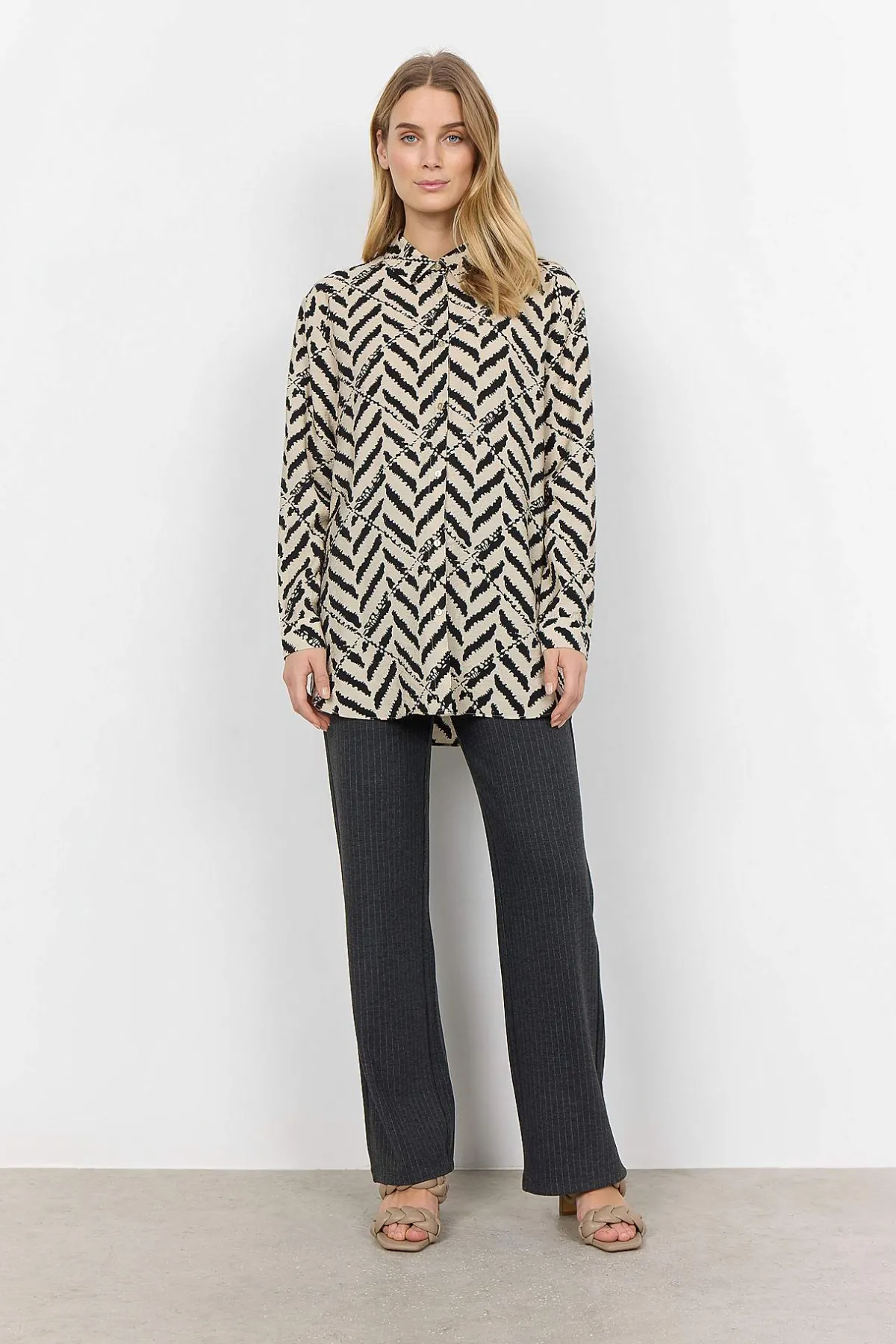 • Mönstrad, vävd långskjorta med lätt krinklat material.