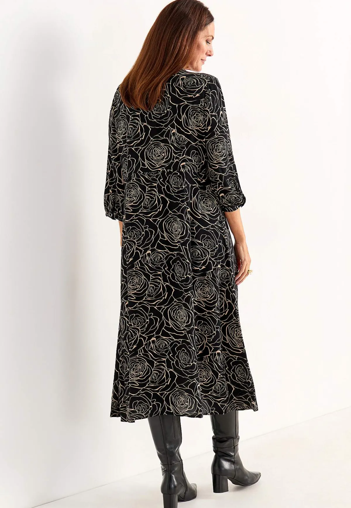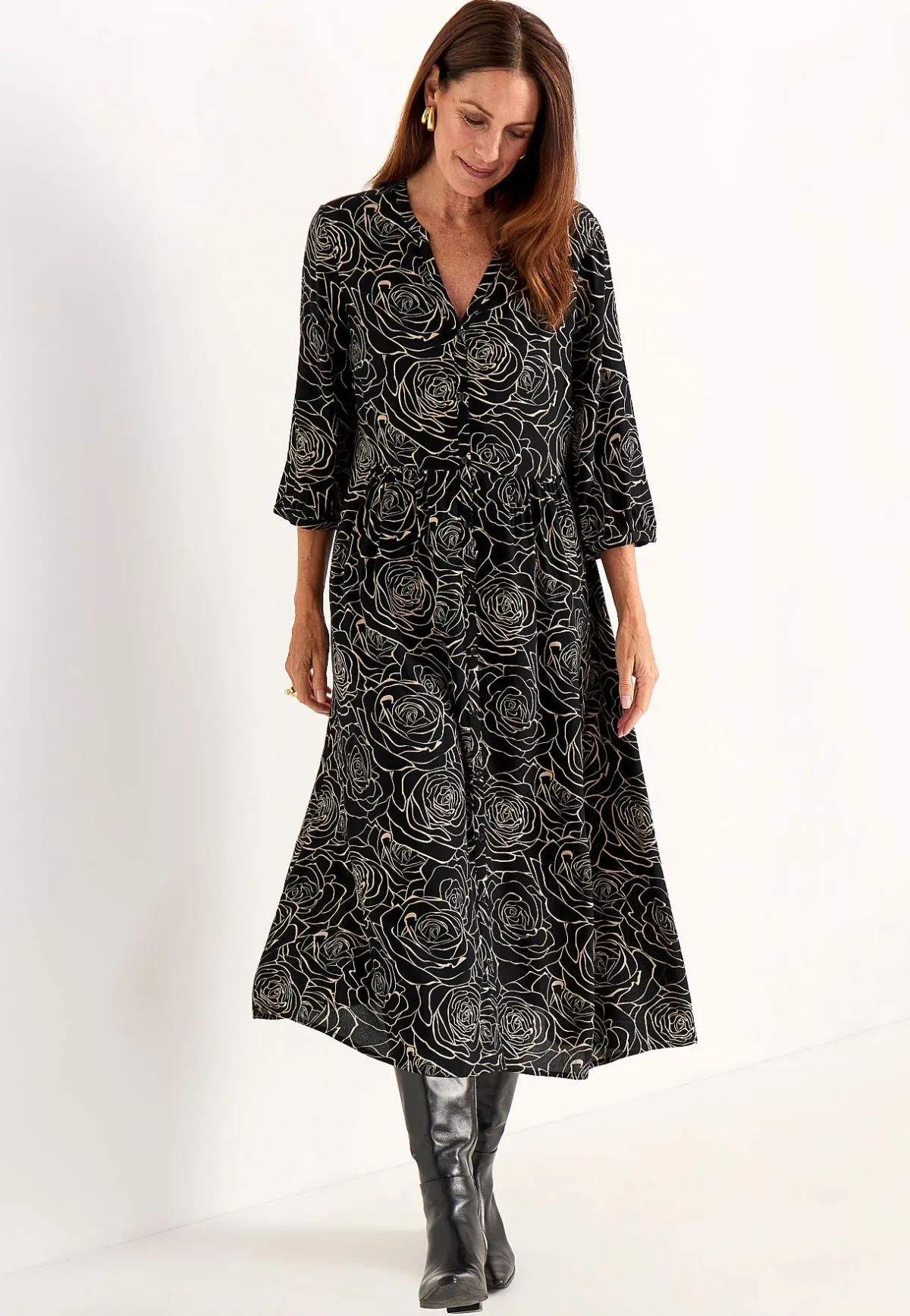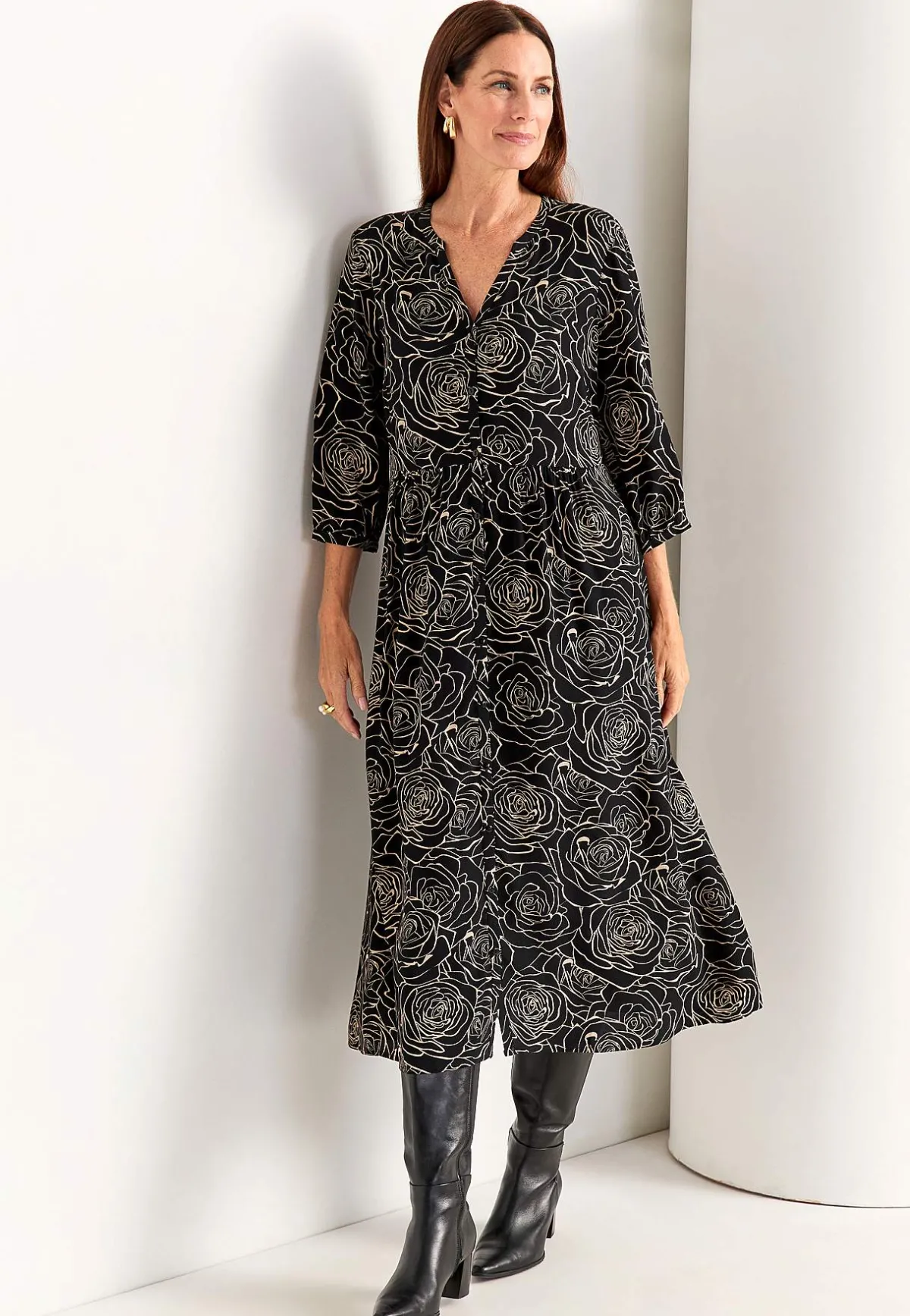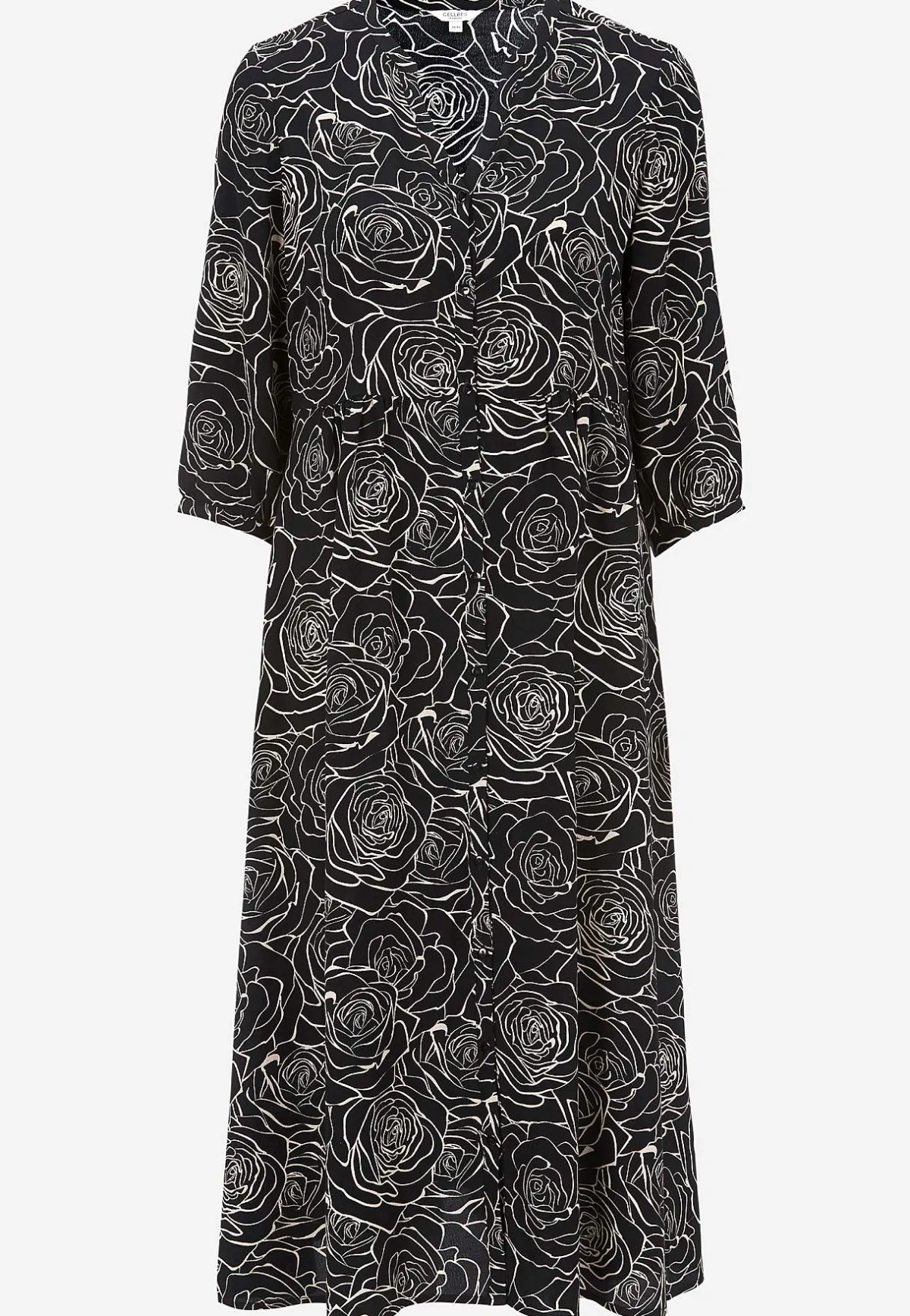 • 3/4-ärmar med knapp och smal manschett i ärmsluten.