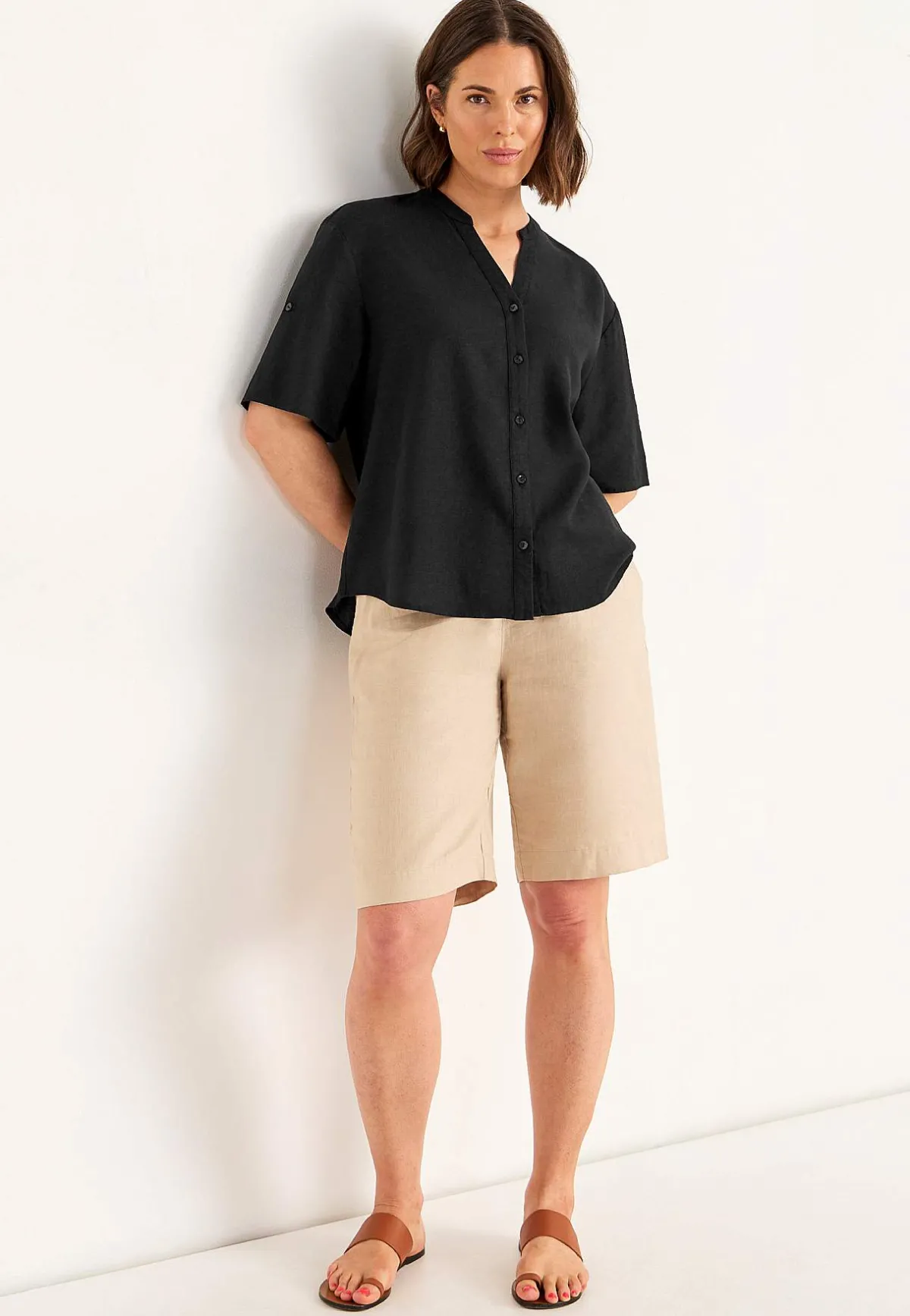 • Uppvikbara ärmar med knapp och slejf.