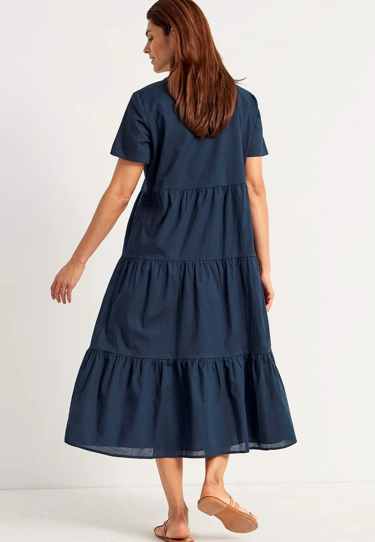 • Utsvängd nederdel med volanger.