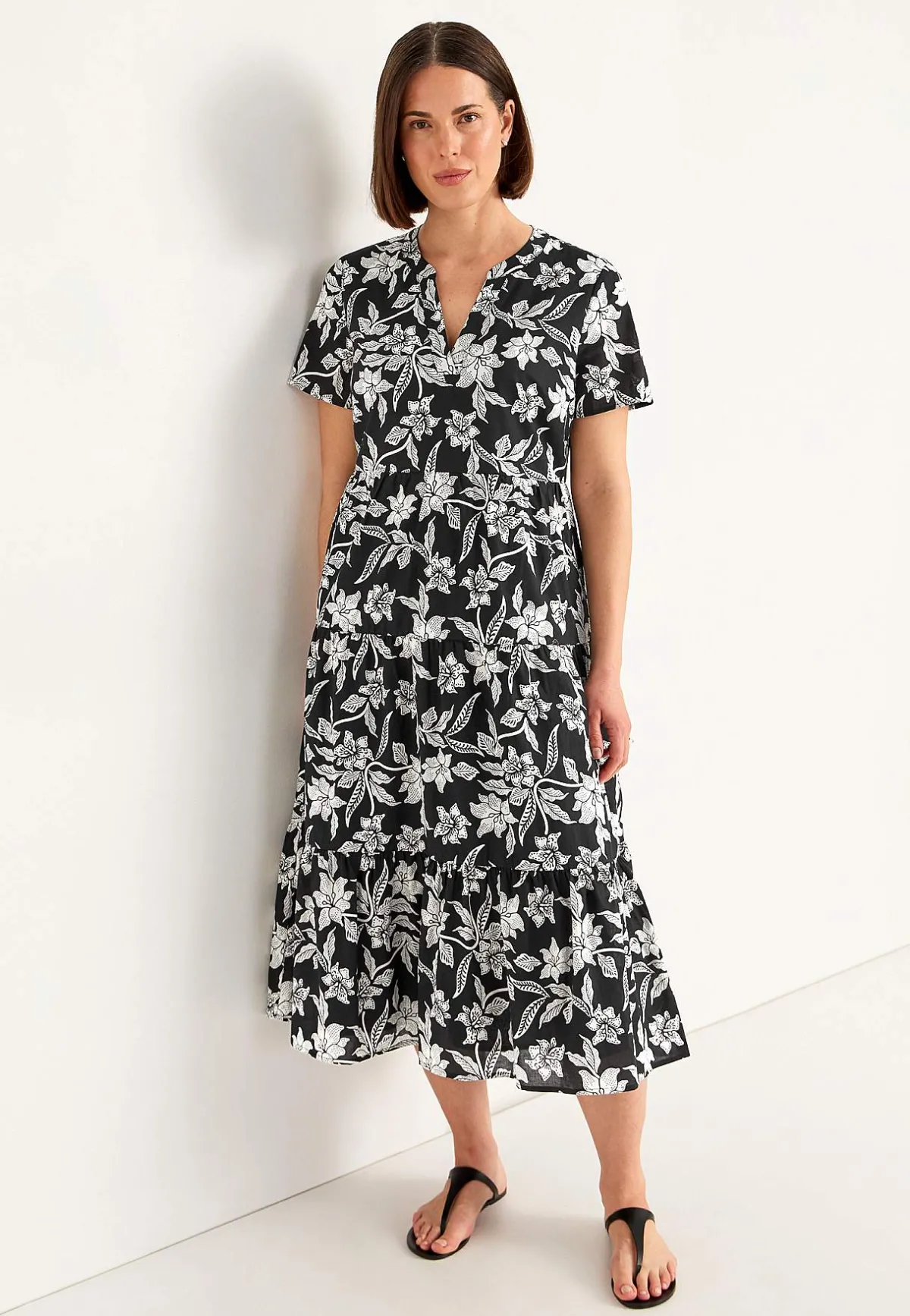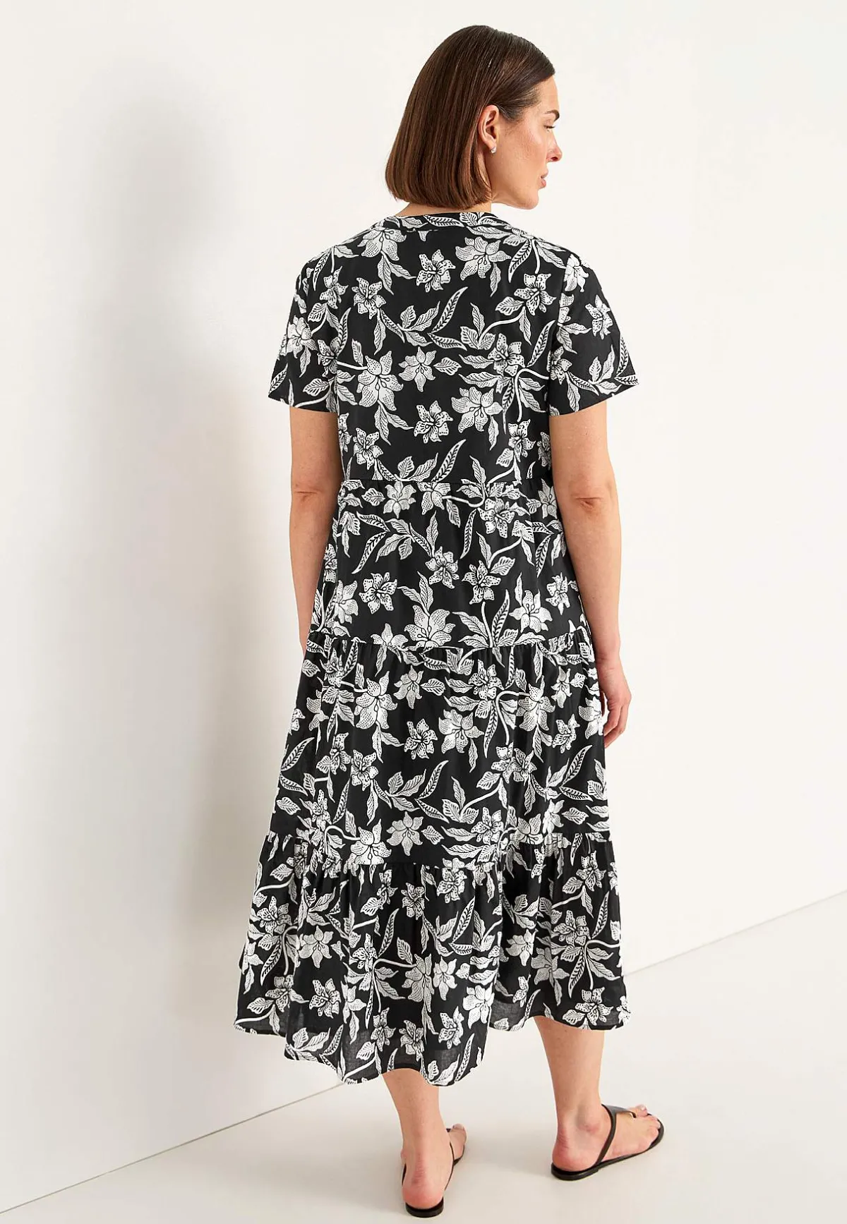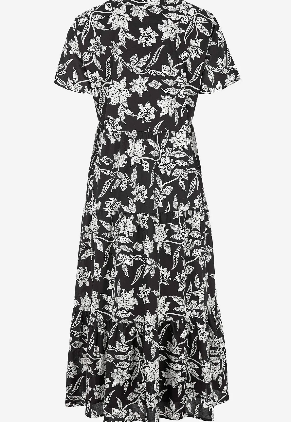 • Utsvängd nederdel med volanger.