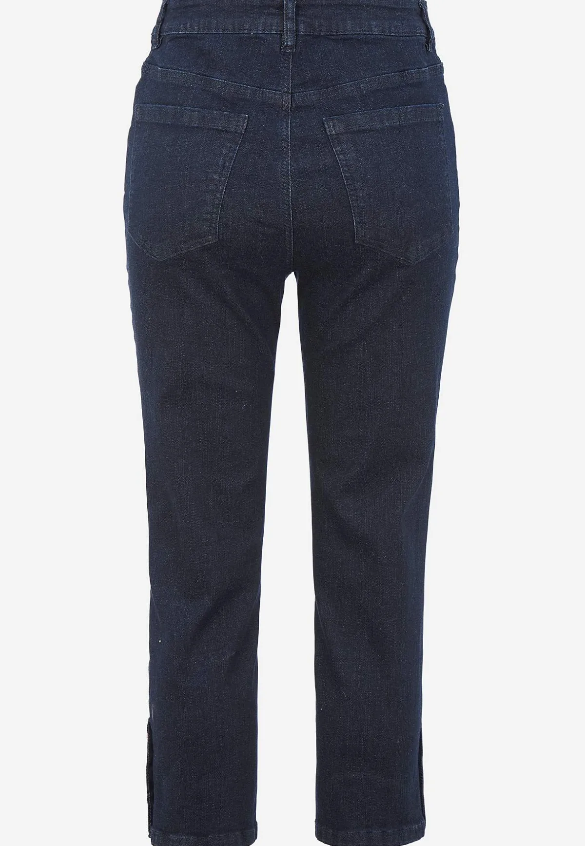 • Femficksdesign med knappar i bensluten.