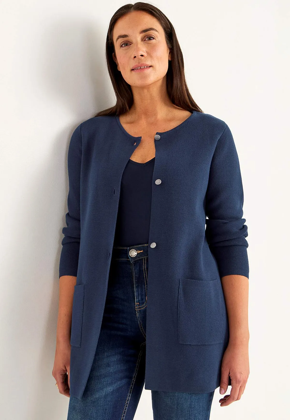 • Finstickad cardigan i formfast, mjuk bomullskvalitet med fin struktur