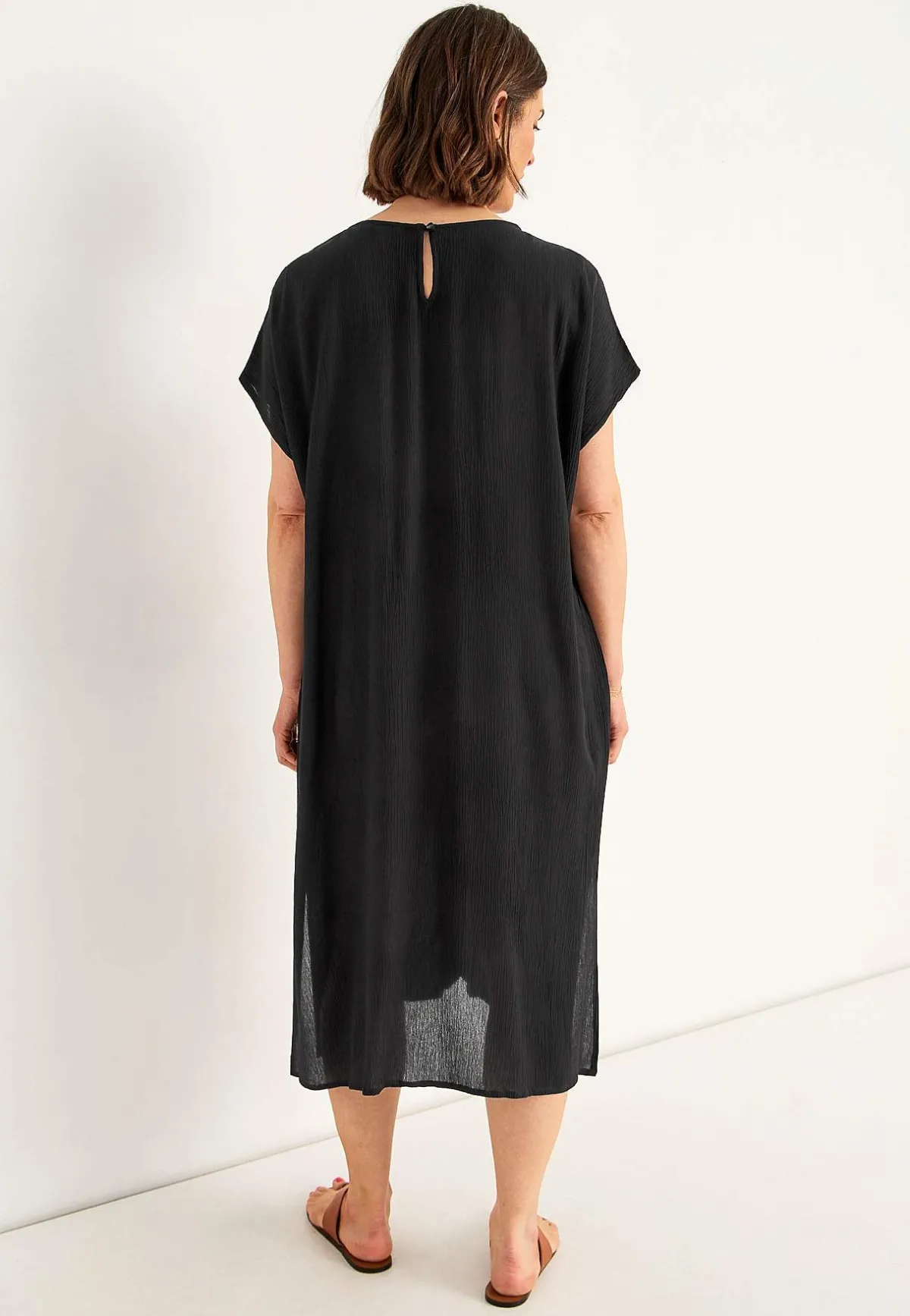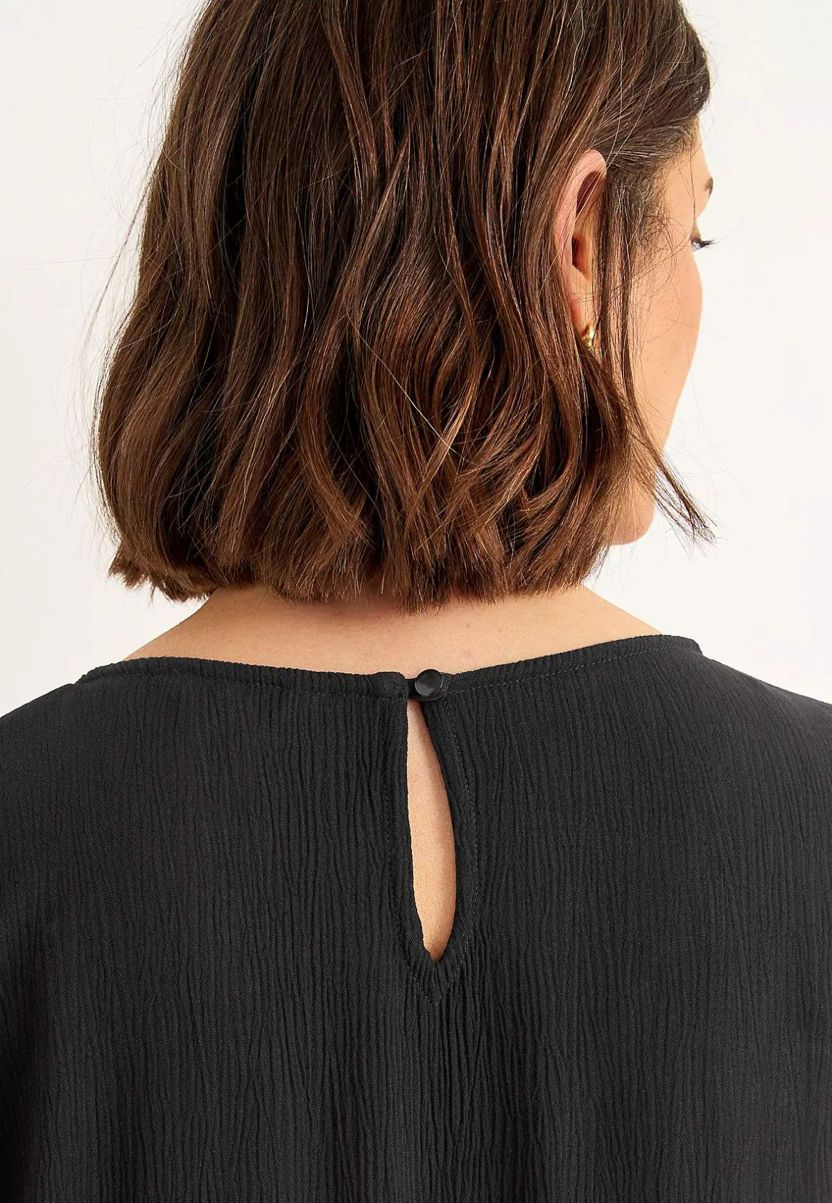 • V-ringad hals med knapp i nacken.