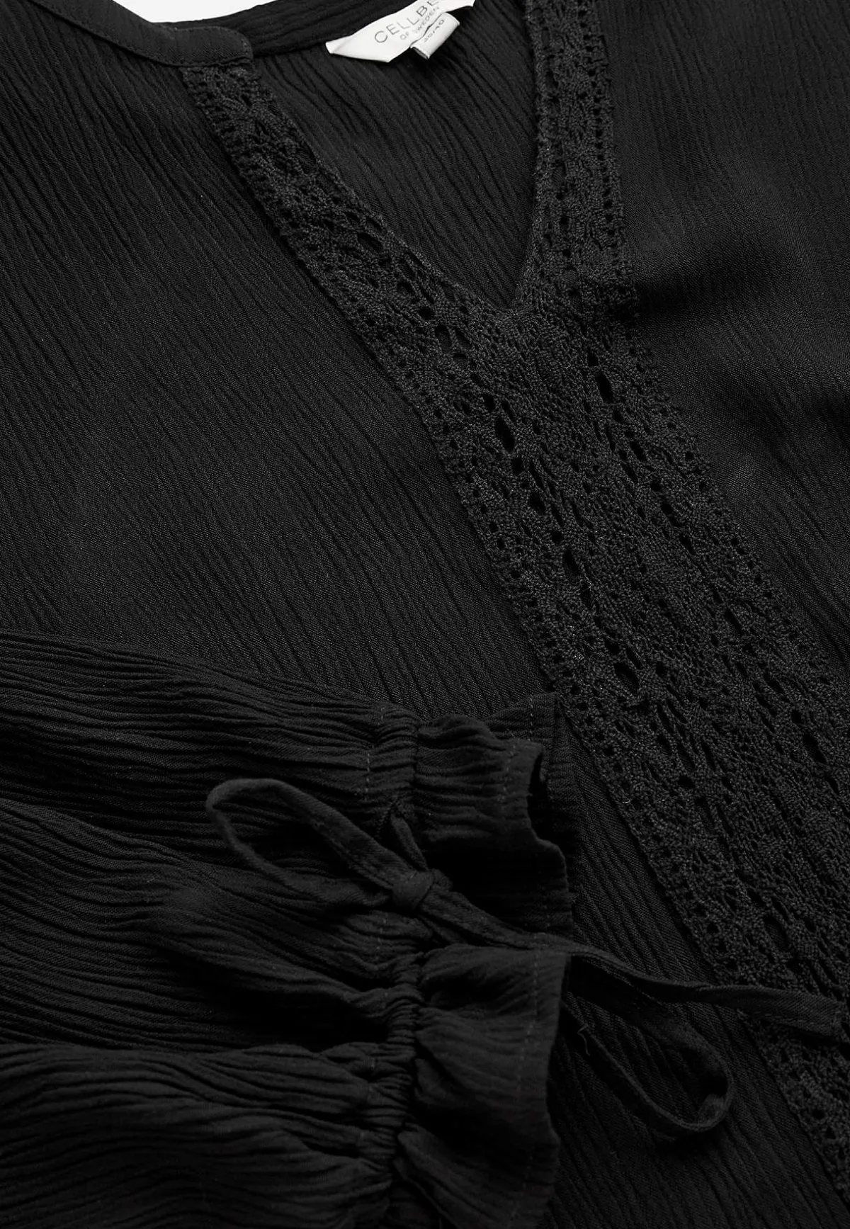 • Vida 3/4-ärmar med knytband och volang.