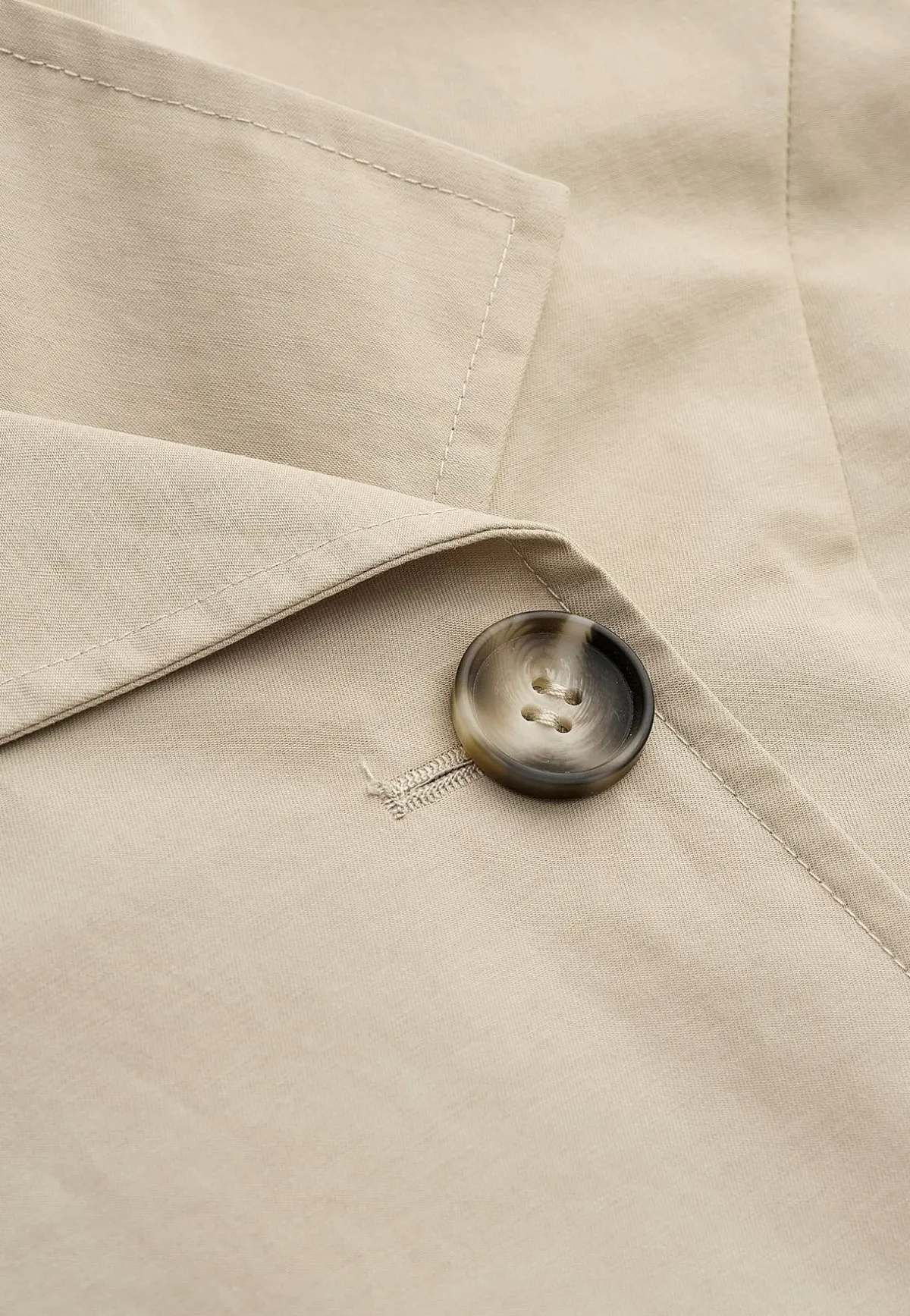 • Dubbelknäppt, helfodrad trenchcoat med krage.