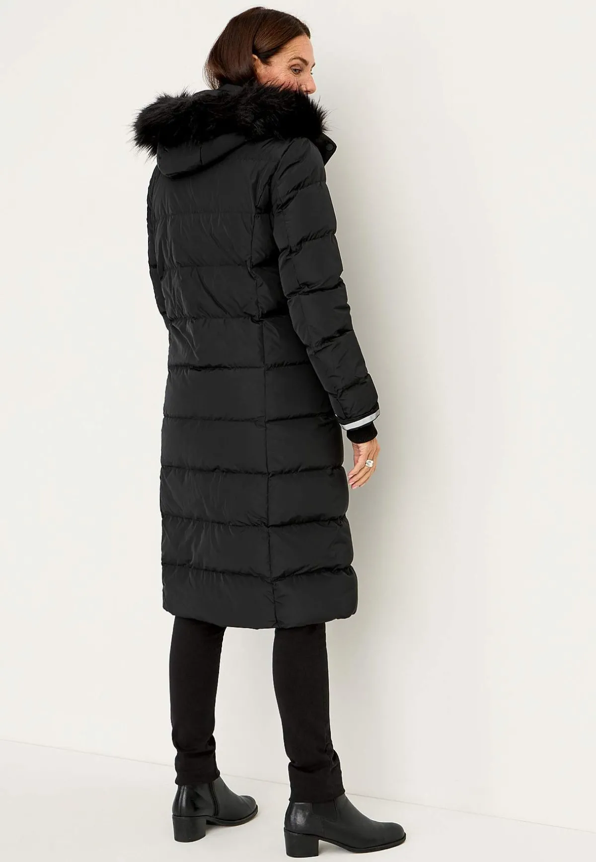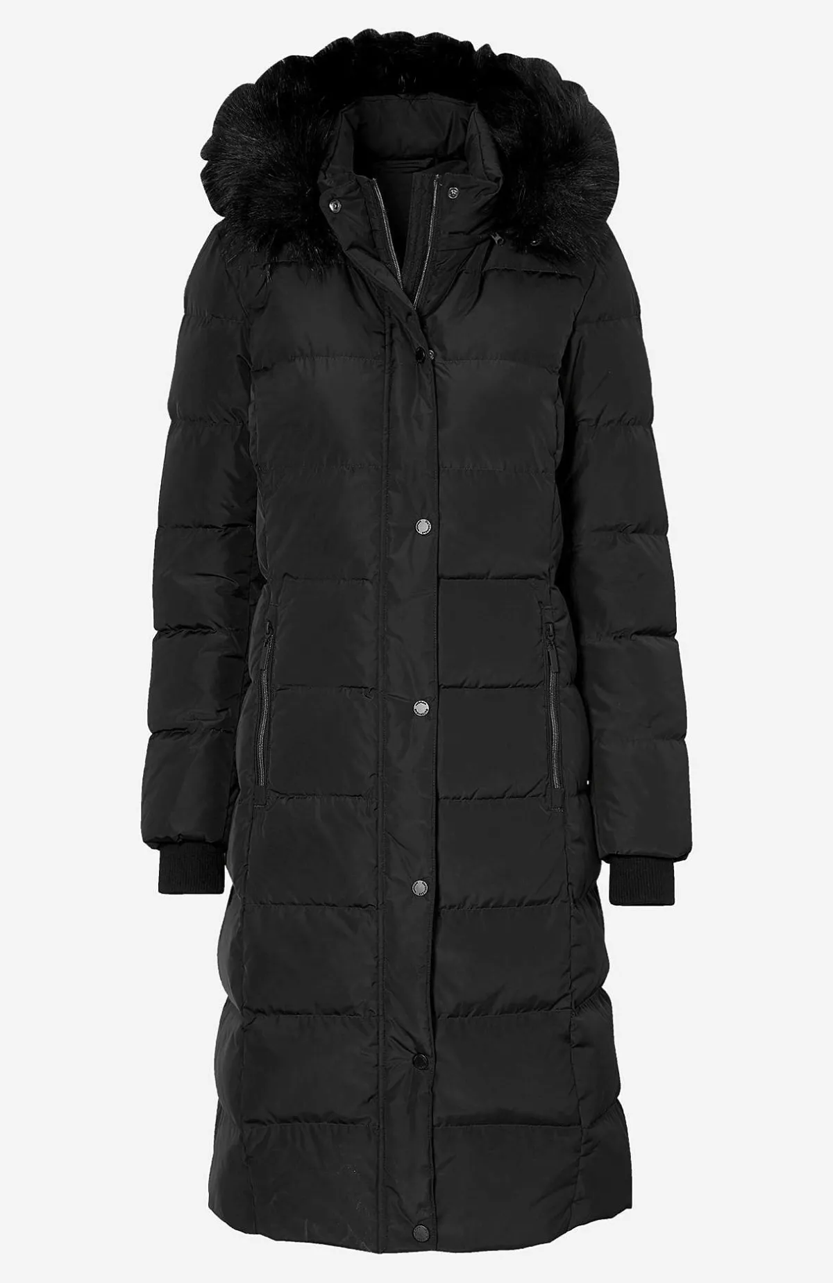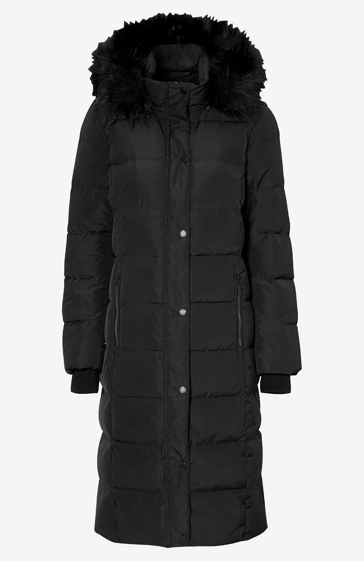 Kviltad dunkappa i härligt lång och varmfodrad modell. Stilsäker kappa med avtagbar huva med dragsko samt stopper och avtagbar pälsimitation. 2-vägsdragkedja med skyddande vindslå som har tryckknappar. Fickor med dragkedja. Uppvikbara ärmslut med reflexdetalj på insidan. Mudd i ärmslut. Innerficka. Rygglängden följer storleken ca 106-122 cm.