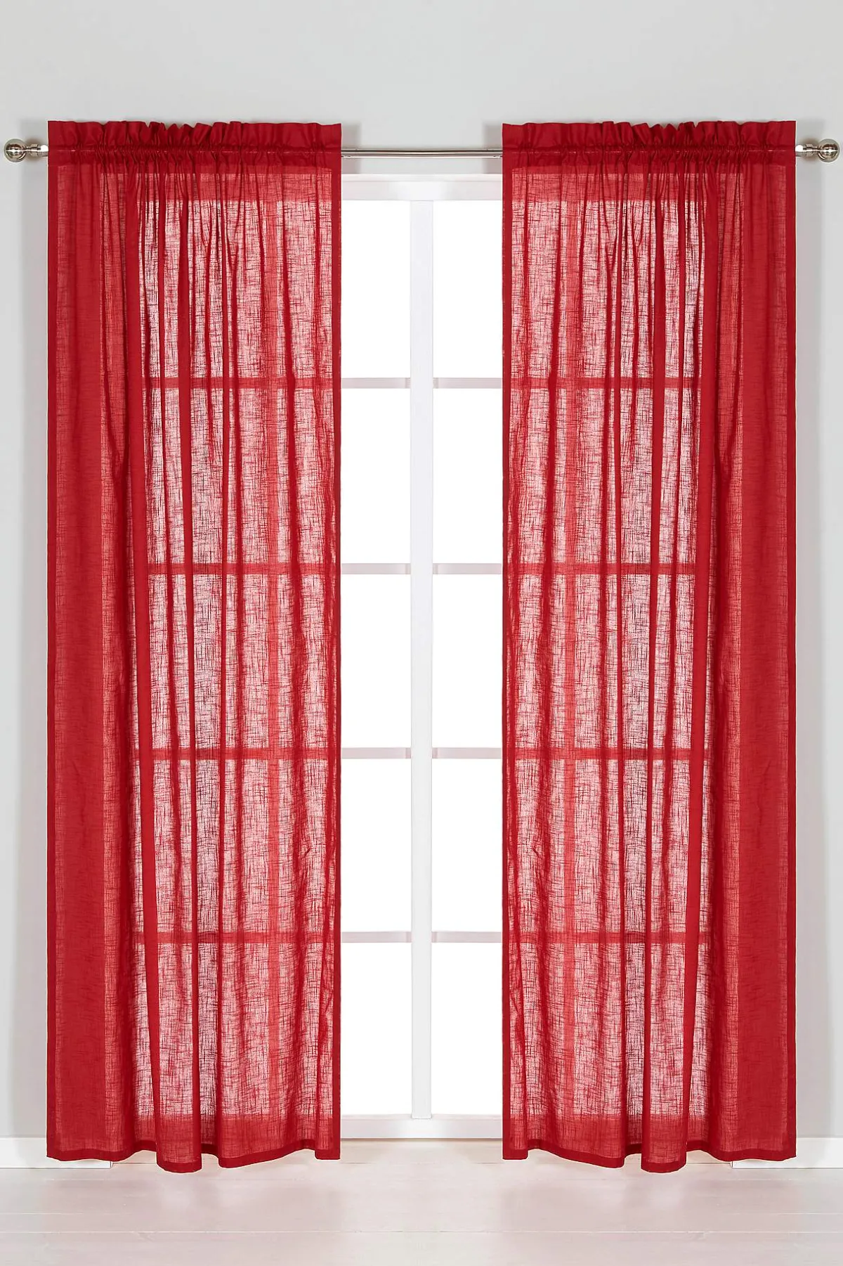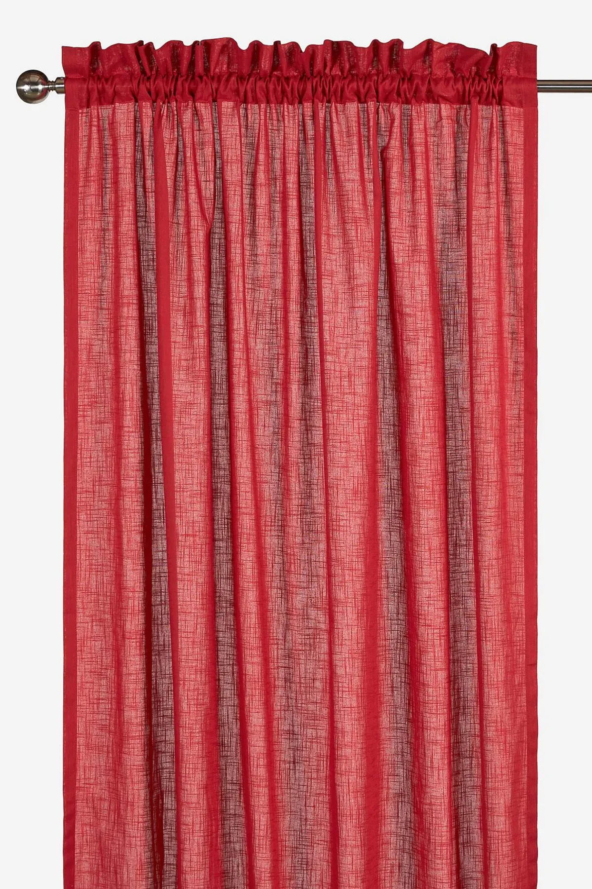 Gardinlängder i fin slubkvalitet med en modern röd julfärg. Två omtag medföljer. 5 cm huvud/5 cm kanal. Ett modernt program med klassisk känsla som även inkluderar hissgardin, gardinkappa, duk och kuddfodral. Du hittar dem här på sajten.