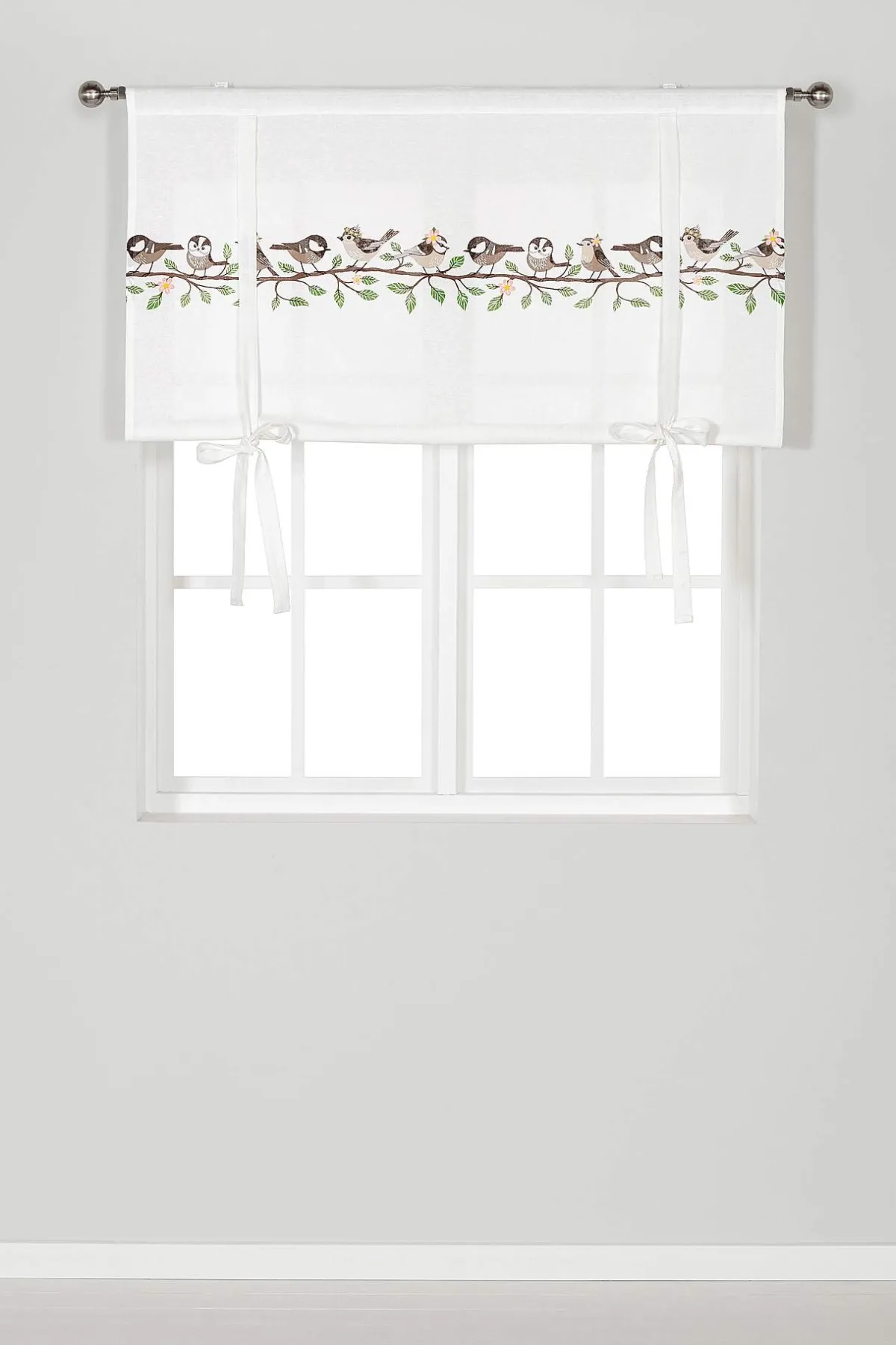 Släpp in lite vår! Fin hissgardin med knytband och söta vårfåglar tryckta på slät bomull. 5 cm kanal uppe och nere. Lätt att trä på gardinstången. Det finns fler produkter som exempelvis förkläde, löpare och kökshanddukar i den här fina serien Vårfåglar.