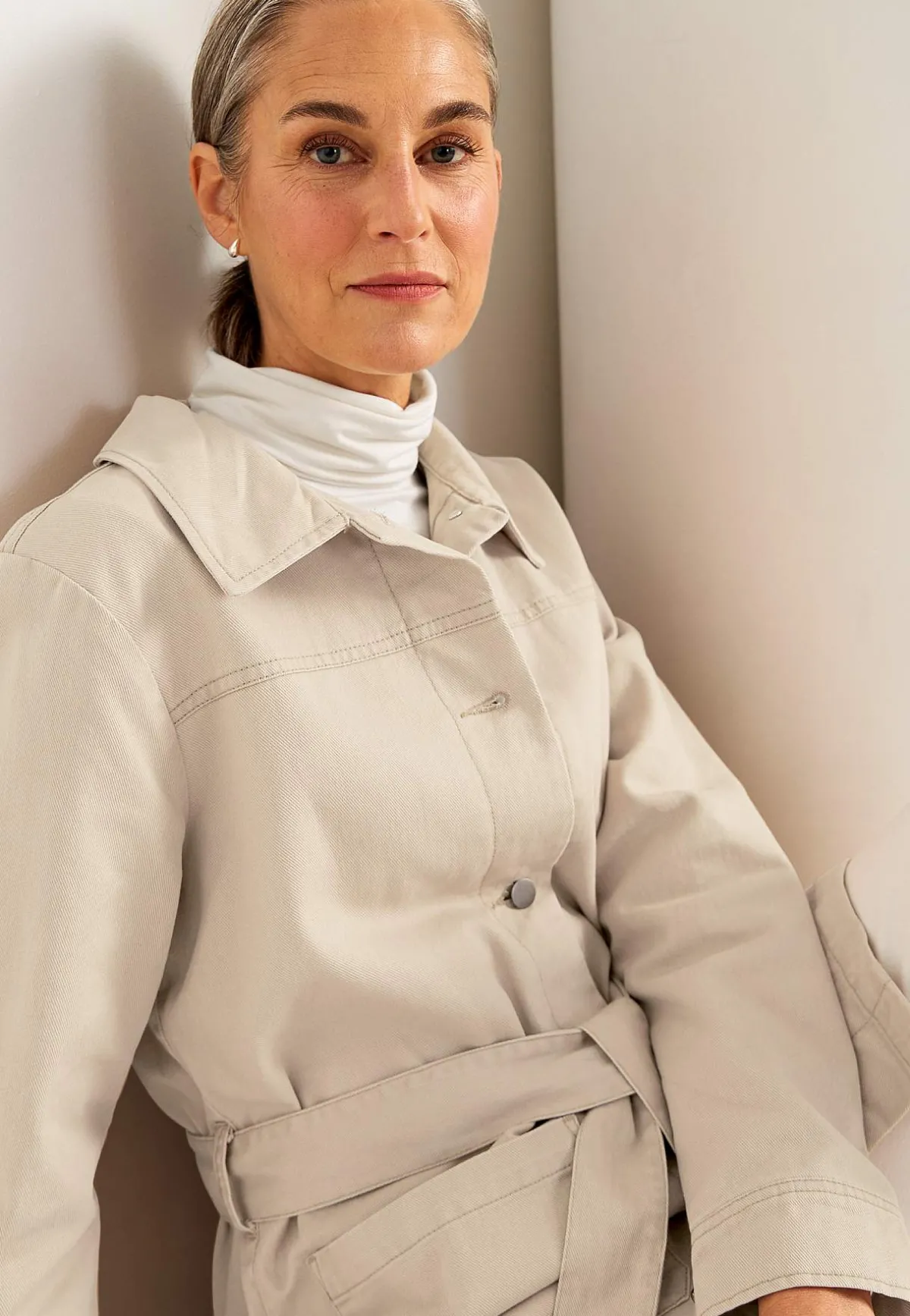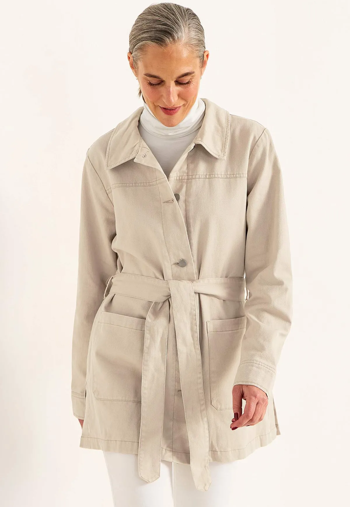 • Beige jacka i bomullstwill.