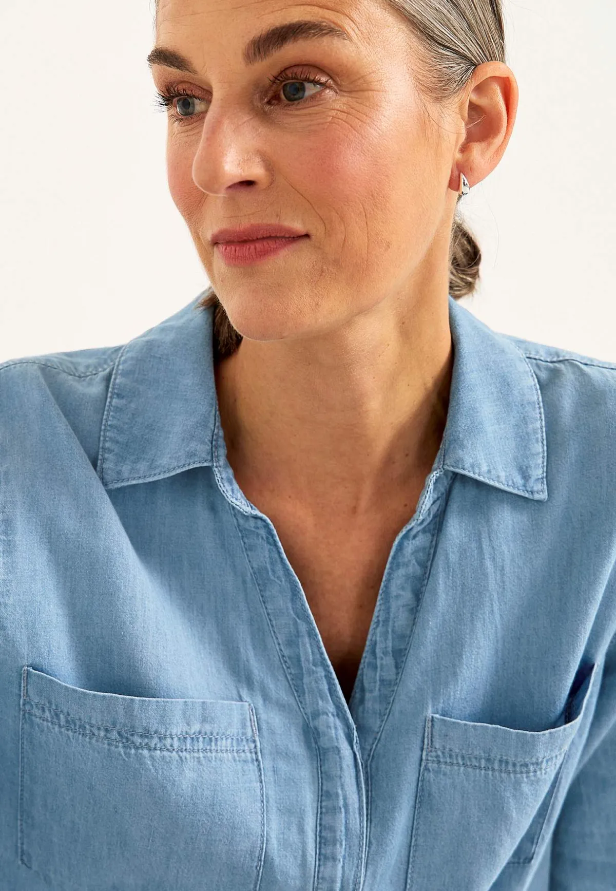 • V-ringad hals och krage.