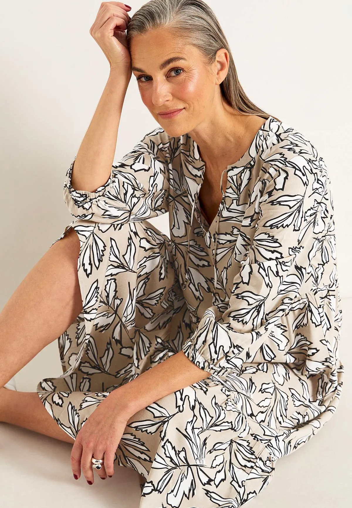 • Vida 3/4-ärmar med resår i ärmsluten.