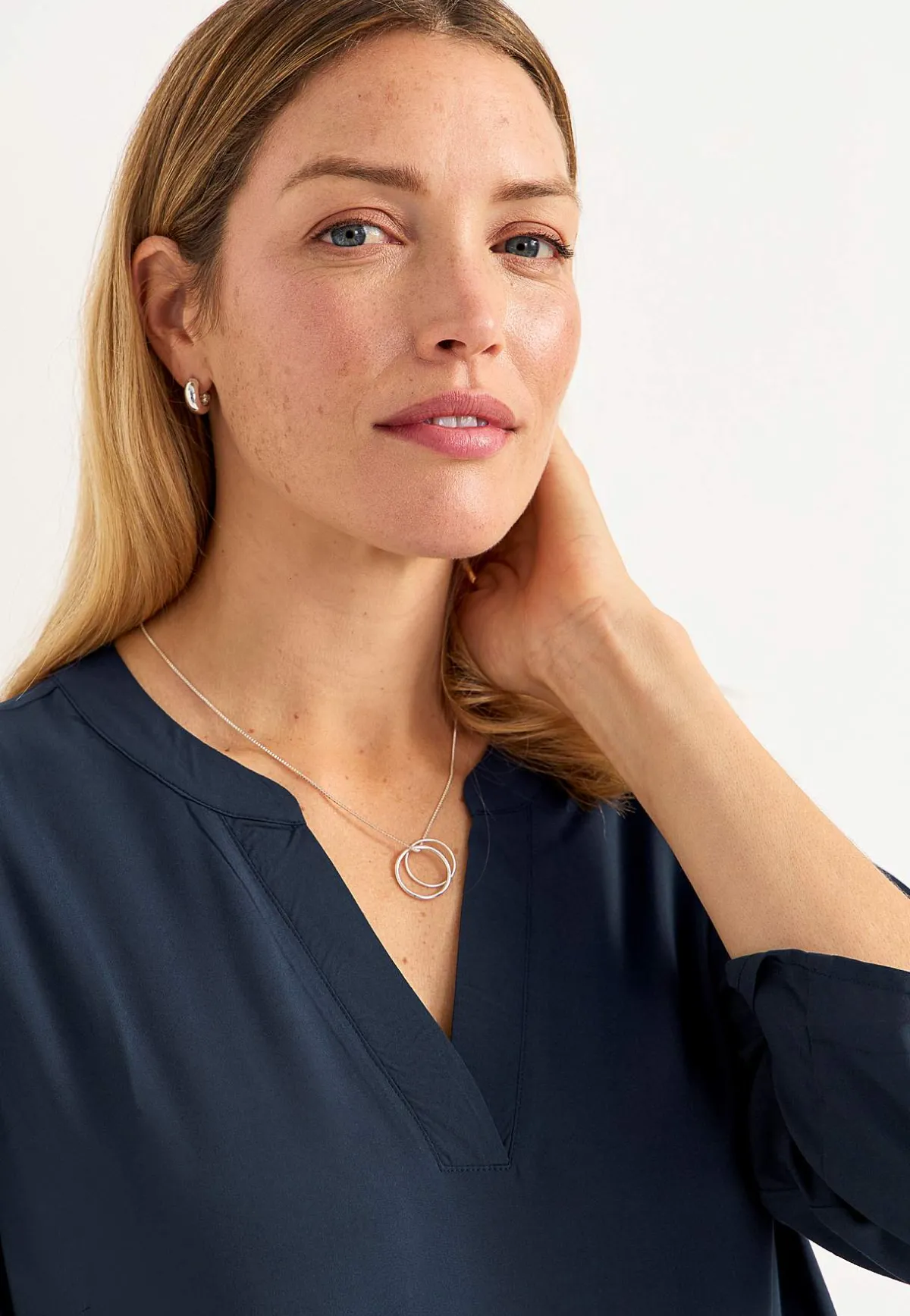 • Rundhalsad med v-formad öppning.