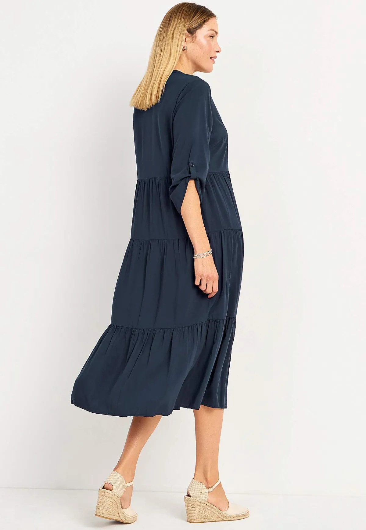 • Uppvikbara 3/4-ärmar med slejf och knapp.