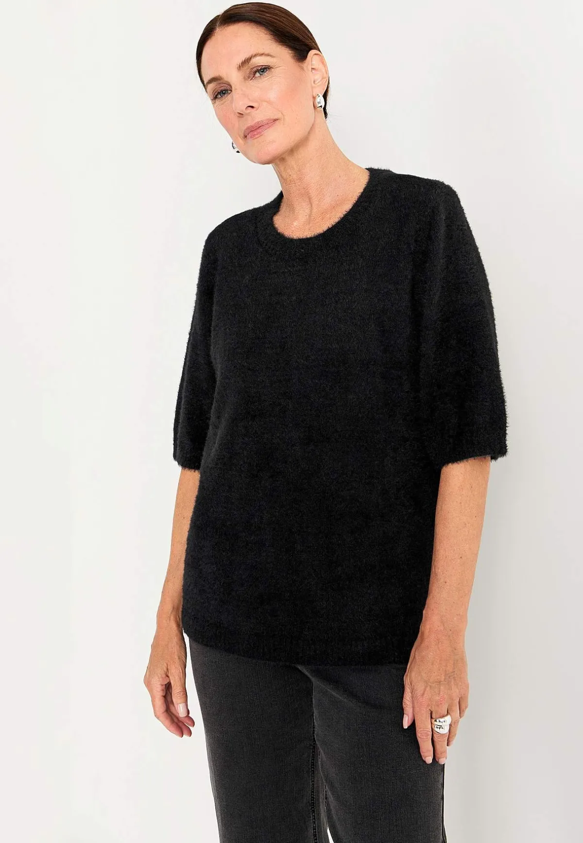 • Ribbstickad mudd i nederkanten, vid halsringningen och i ärmsluten.